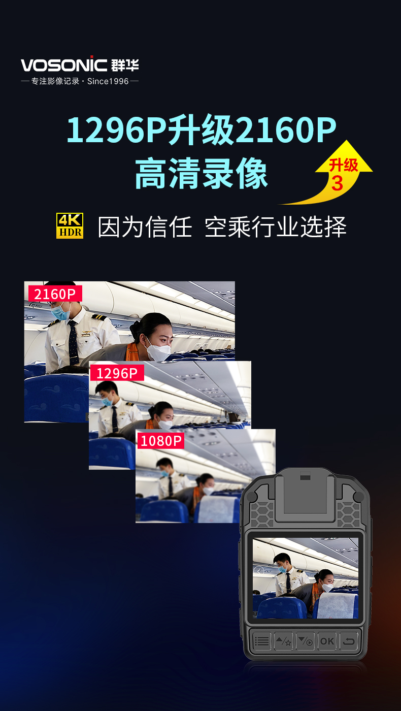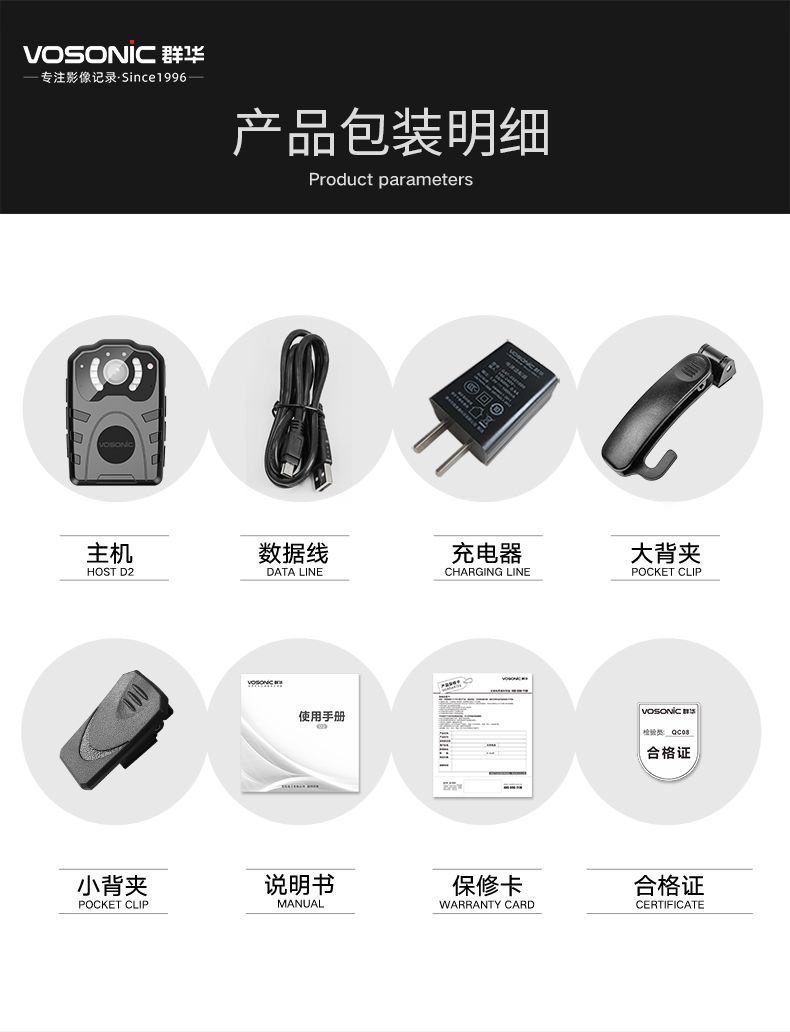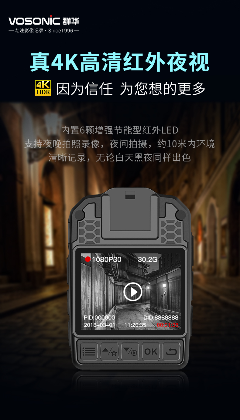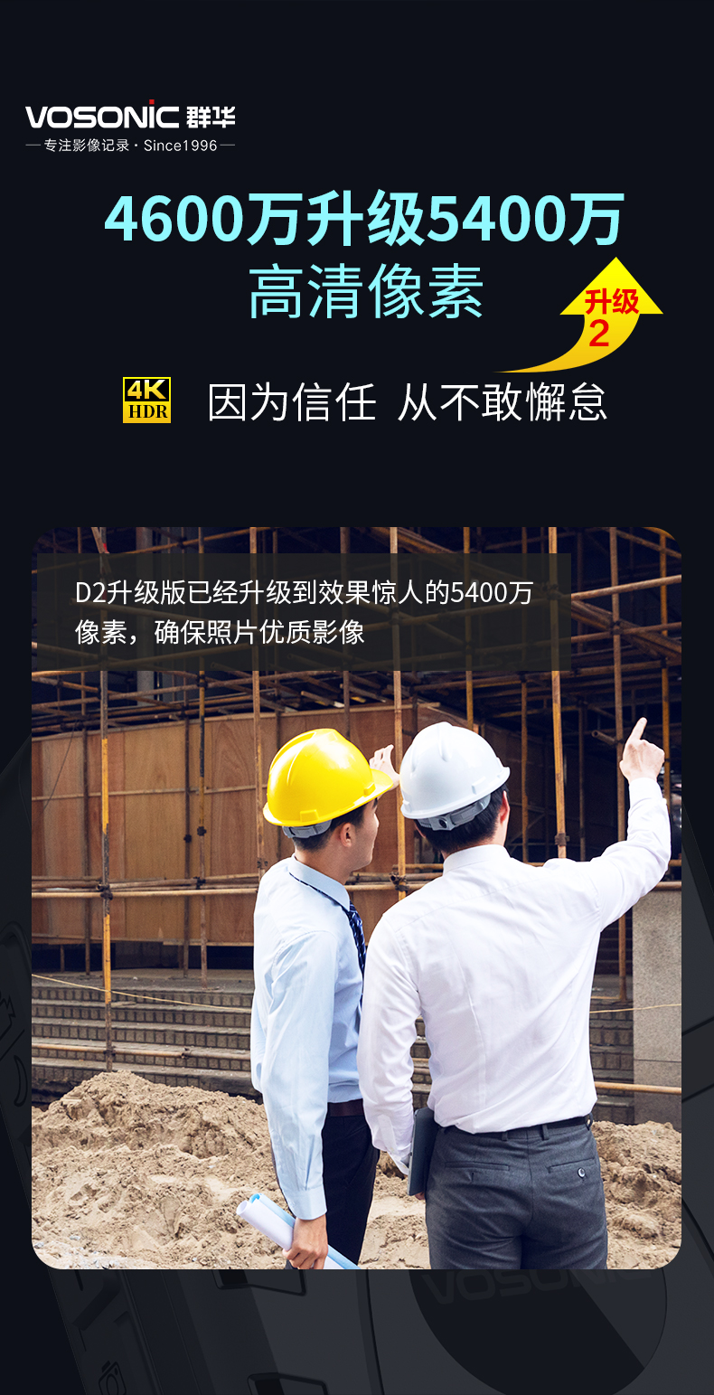 群华(VOSONIC)D2 通用无线电通信设备 128G 升级4K执法记录仪2160p高清5400万像素