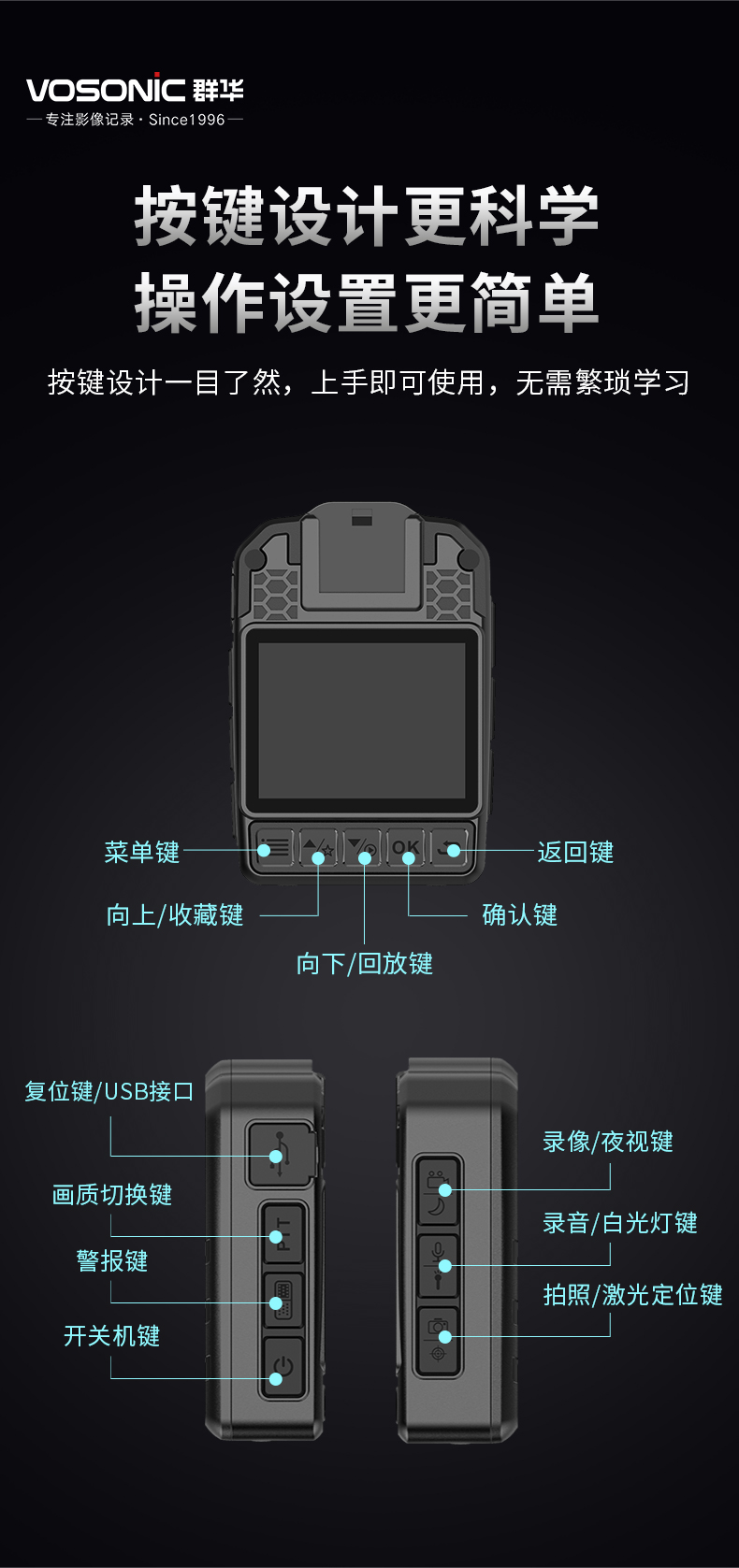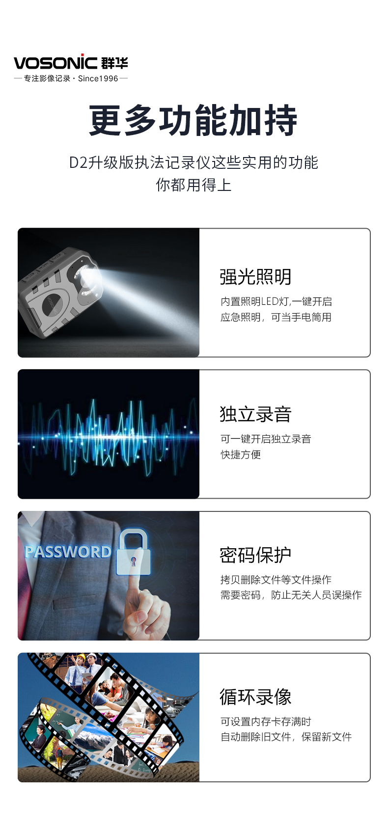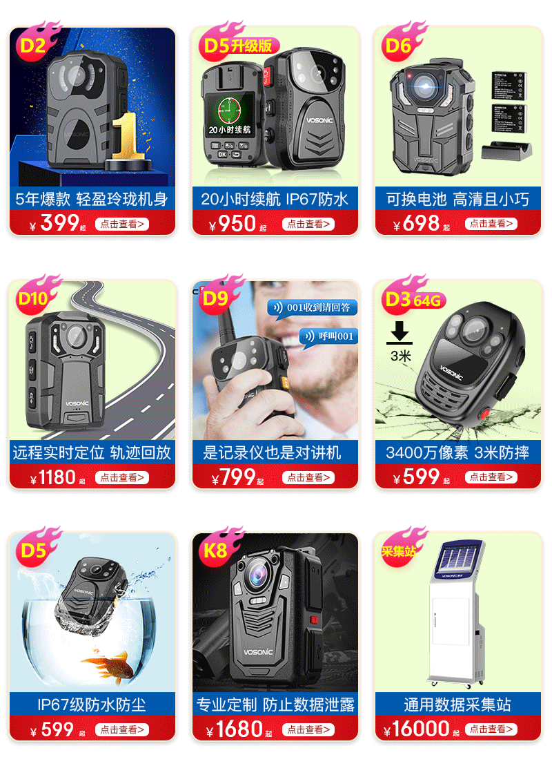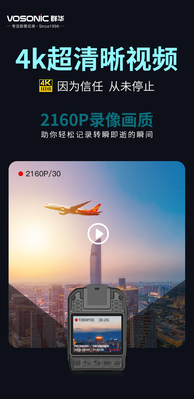 群华(VOSONIC)D2 通用无线电通信设备 128G 升级4K执法记录仪2160p高清5400万像素