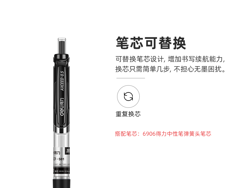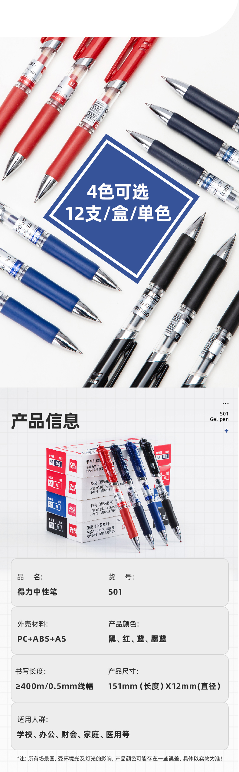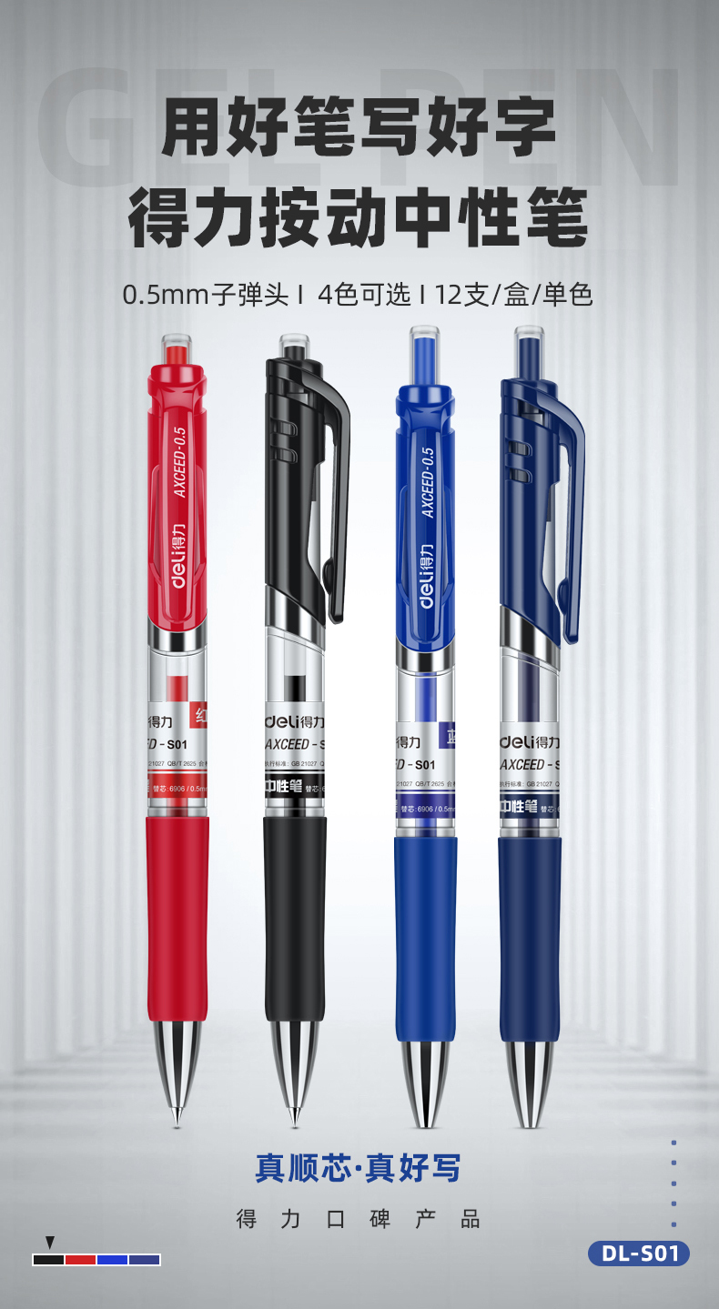 得力/deli S01 书写用笔类用具 0.5mm子弹头经典办公按动笔