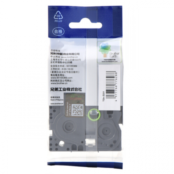 兄弟(brother)TZe-Z231 12mm白底黑字标签色带