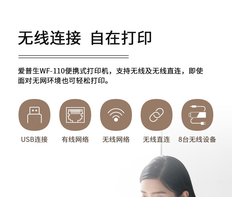 爱普生(EPSON) WF-110 喷墨打印机 移动USB供电无线手机打印WF-100升级款