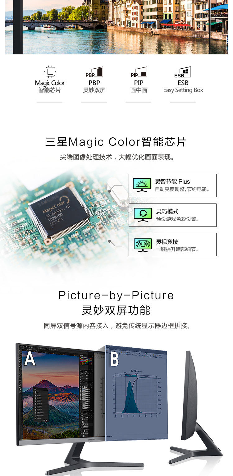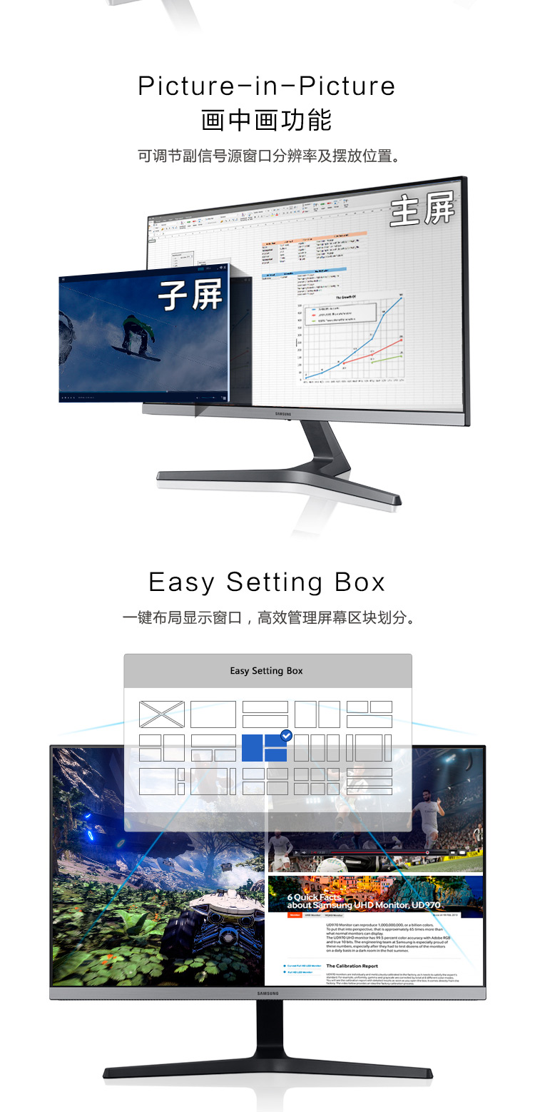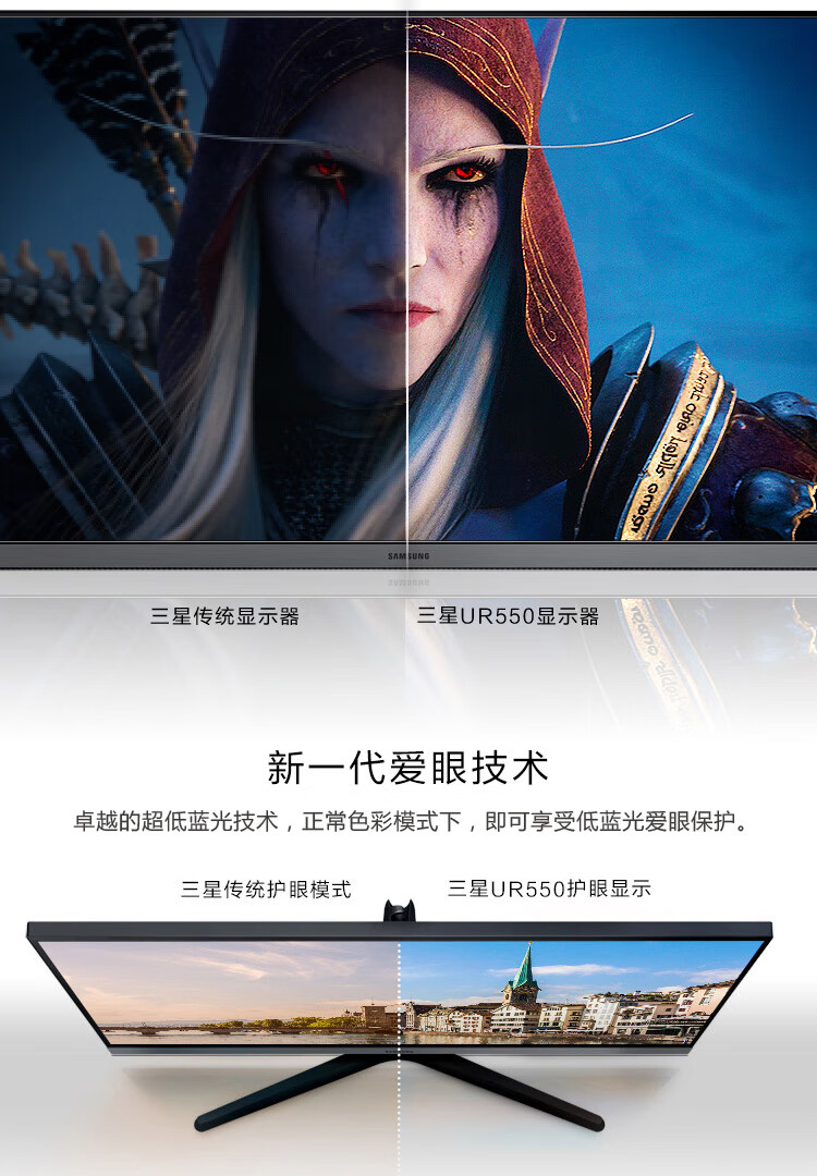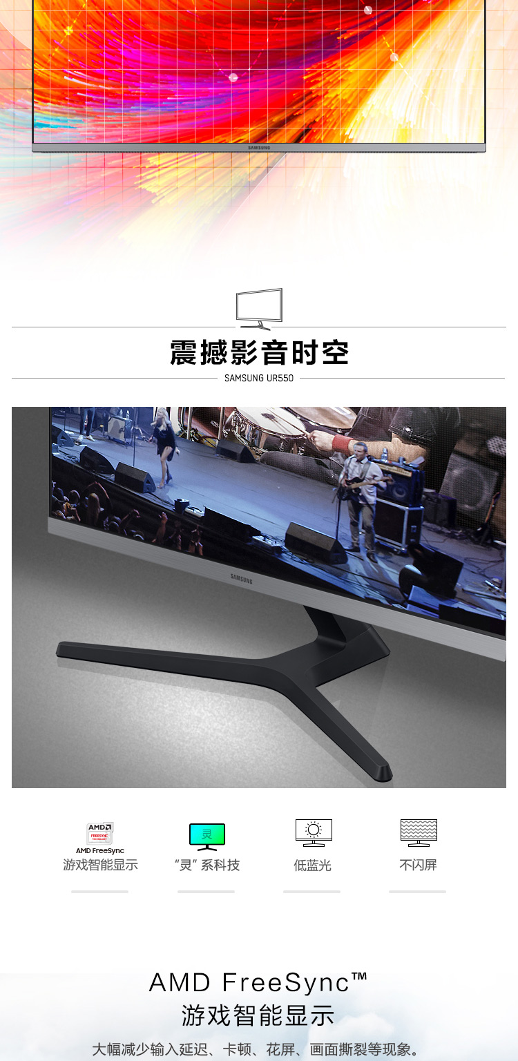 三星(SAMSUNG)28英寸 4K IPS 10.7亿色 广色域 设计制图 三面窄边框 UR55 高清电脑显示器 U28R550UQC