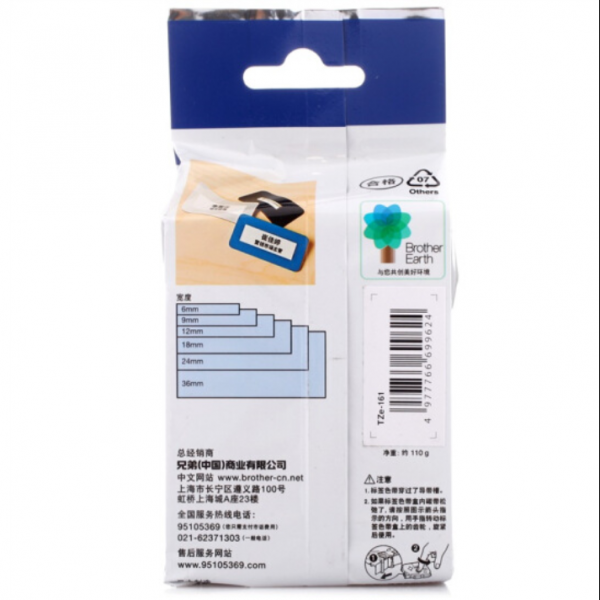兄弟(brother)TZe-161 36mm透明底黑字标签色带
