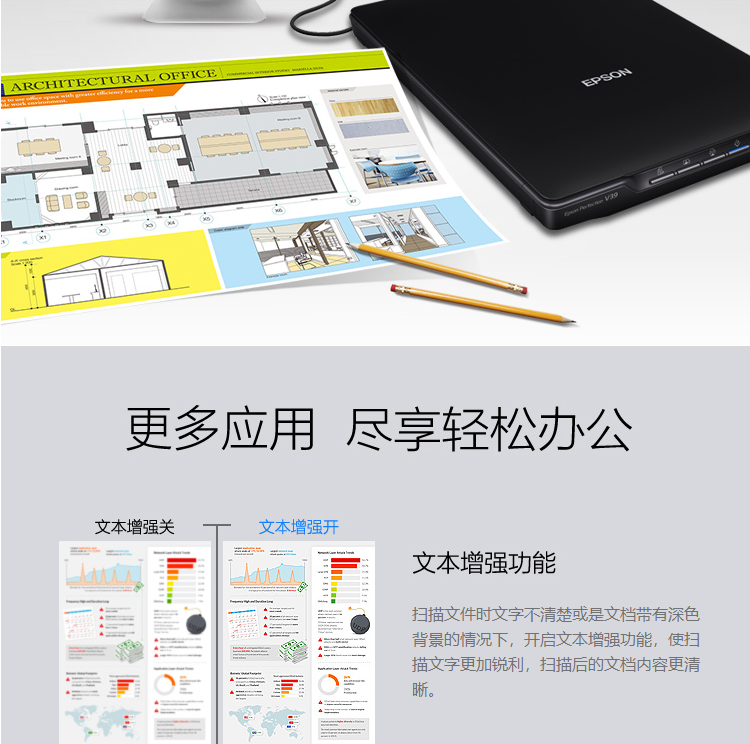 爱普生(EPSON)V39 扫描仪 A4平板式彩色照片与文档扫描仪 高效型 官方标配