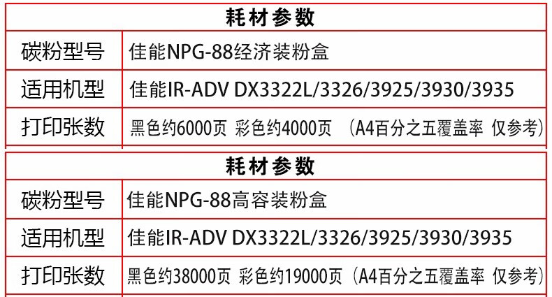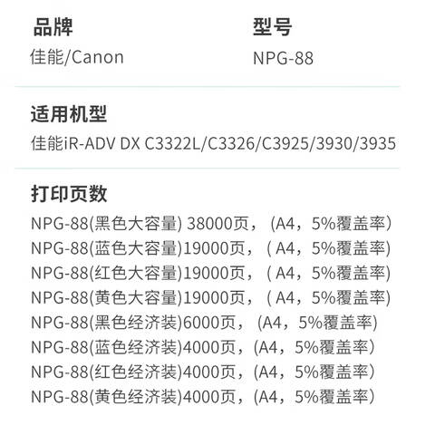 佳能(Canon)NPG-88原装墨粉盒g89适用c3326/3322L/3926/3930碳粉 NPG-88四色经济套装【黑红黄蓝】