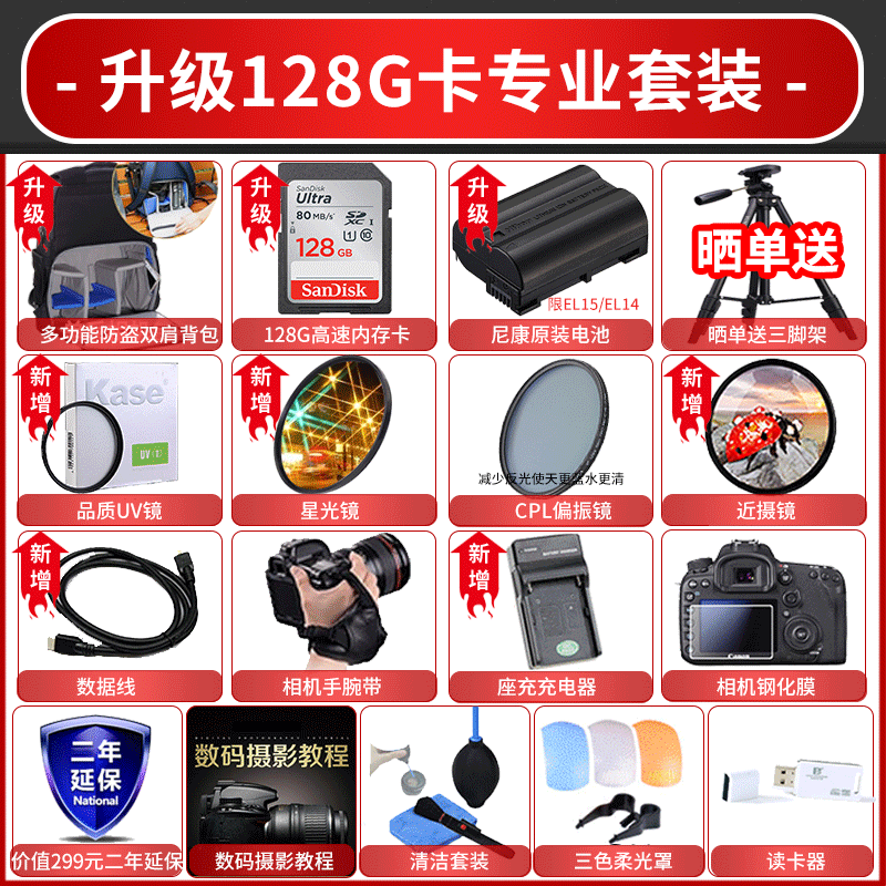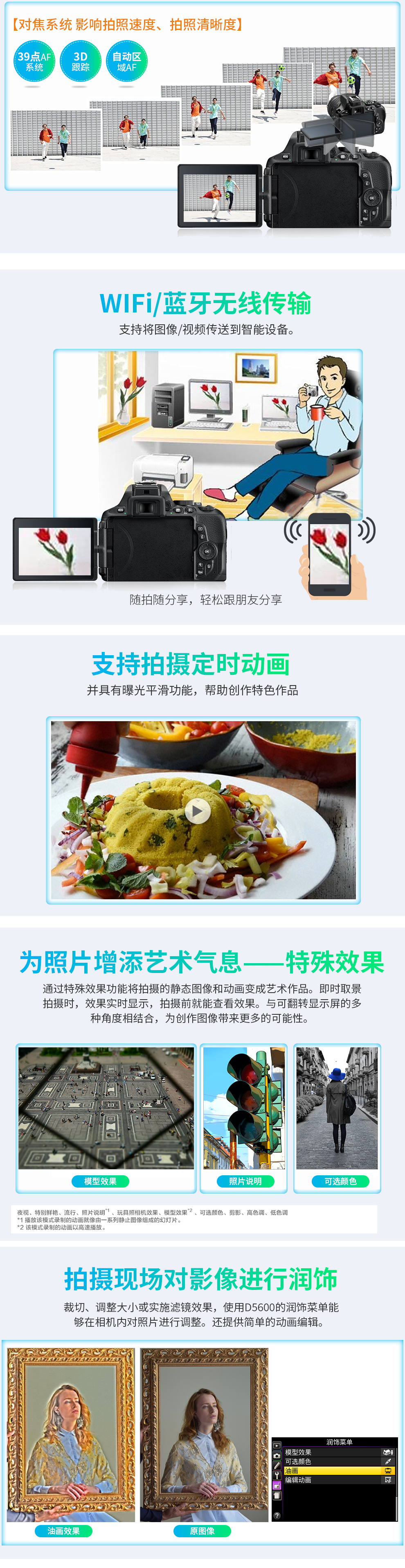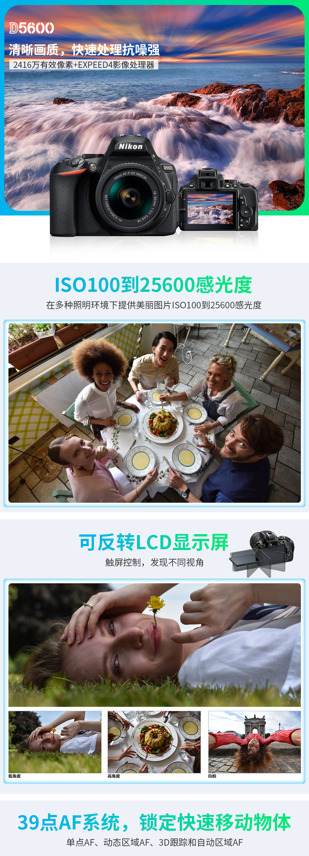 尼康(Nikon)D5600 单反相机 入门单反相机初学者照相机 尼康AF-P 18-55mm镜头 128G专业套餐