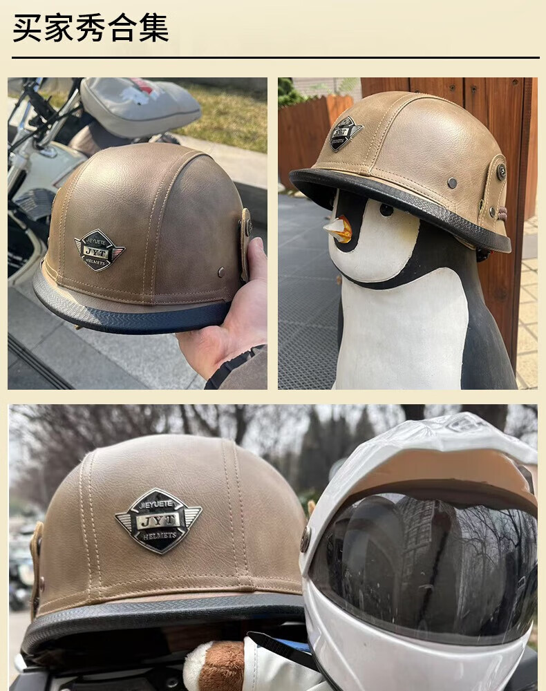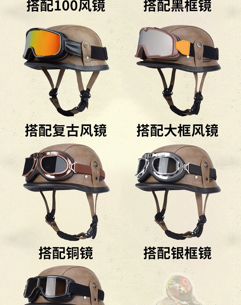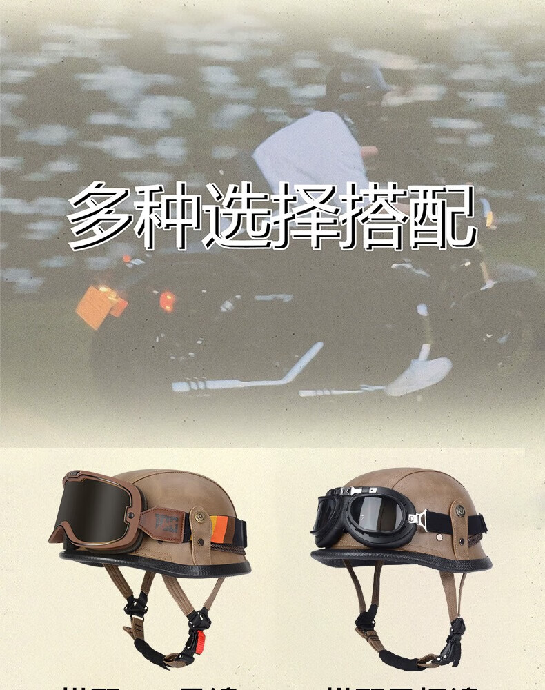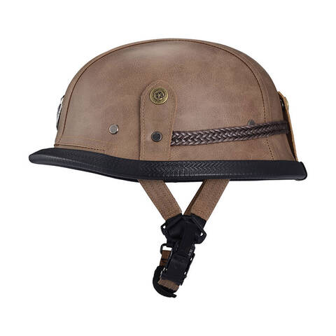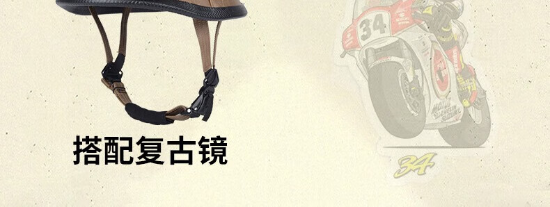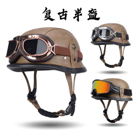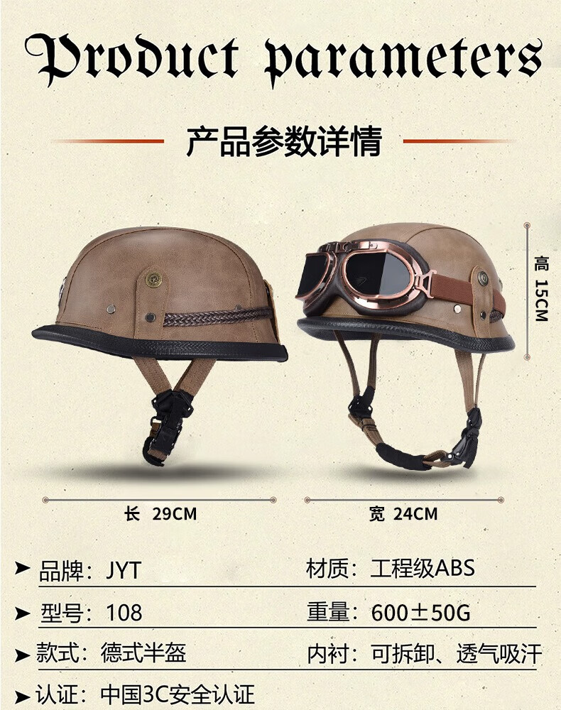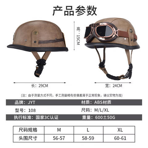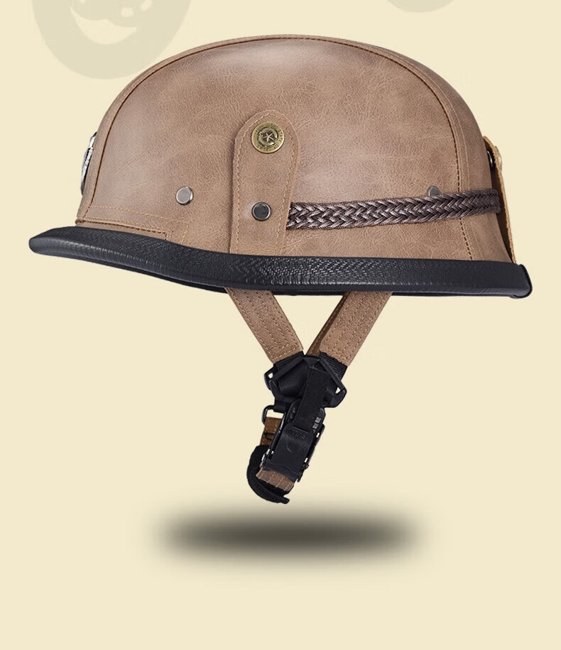 JYT摩托车头盔复古半盔德式钢盔春夏季通用男女3C认证电动车安全帽 浅棕 L(58-59cm)