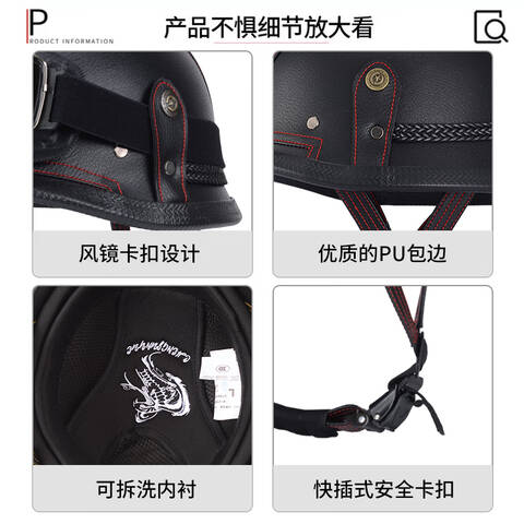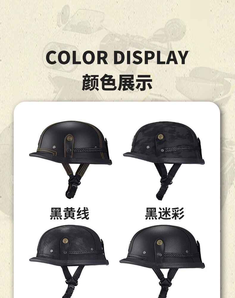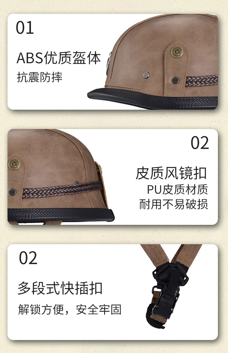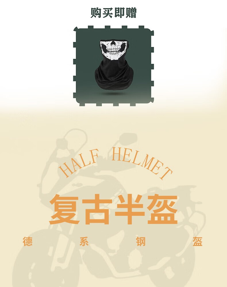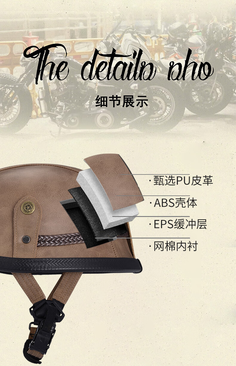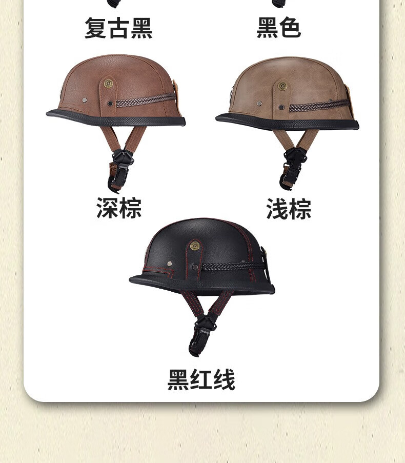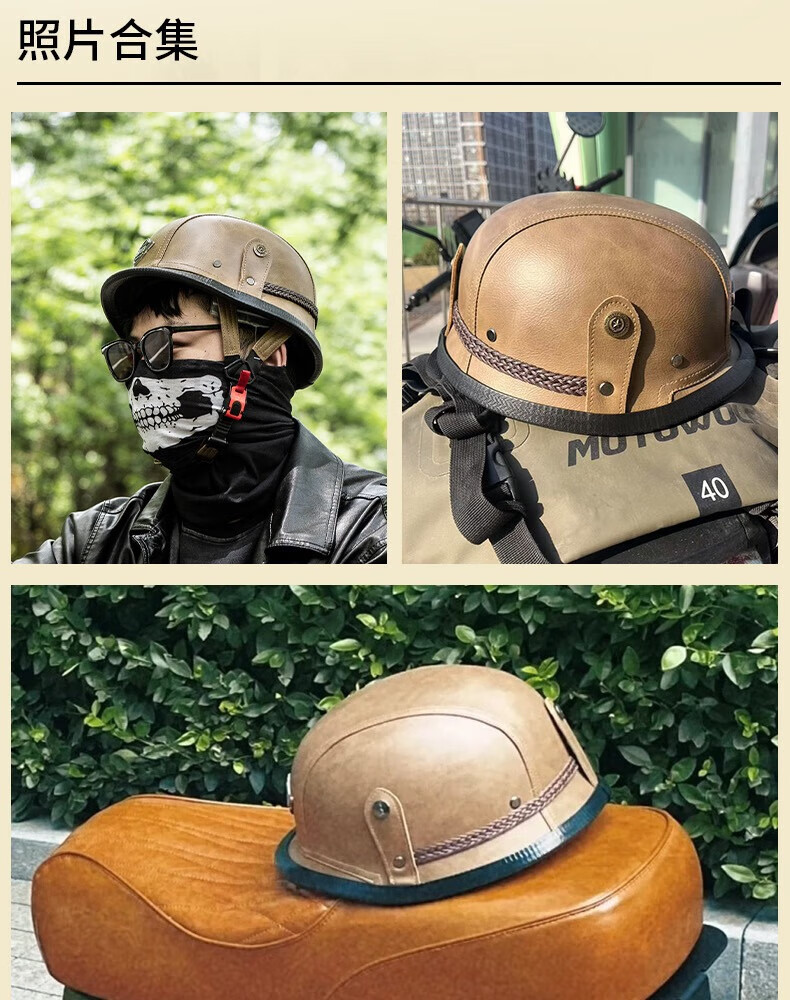 JYT摩托车头盔复古半盔德式钢盔春夏季通用男女3C认证电动车安全帽 浅棕 L(58-59cm)