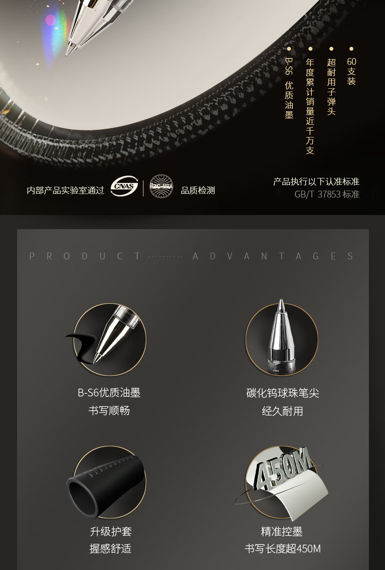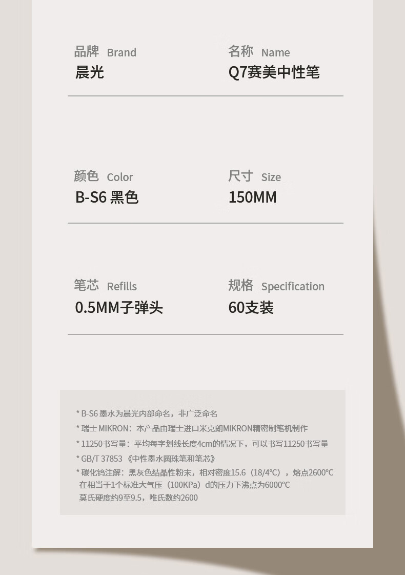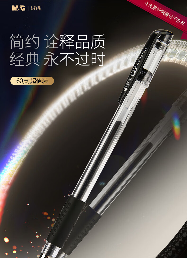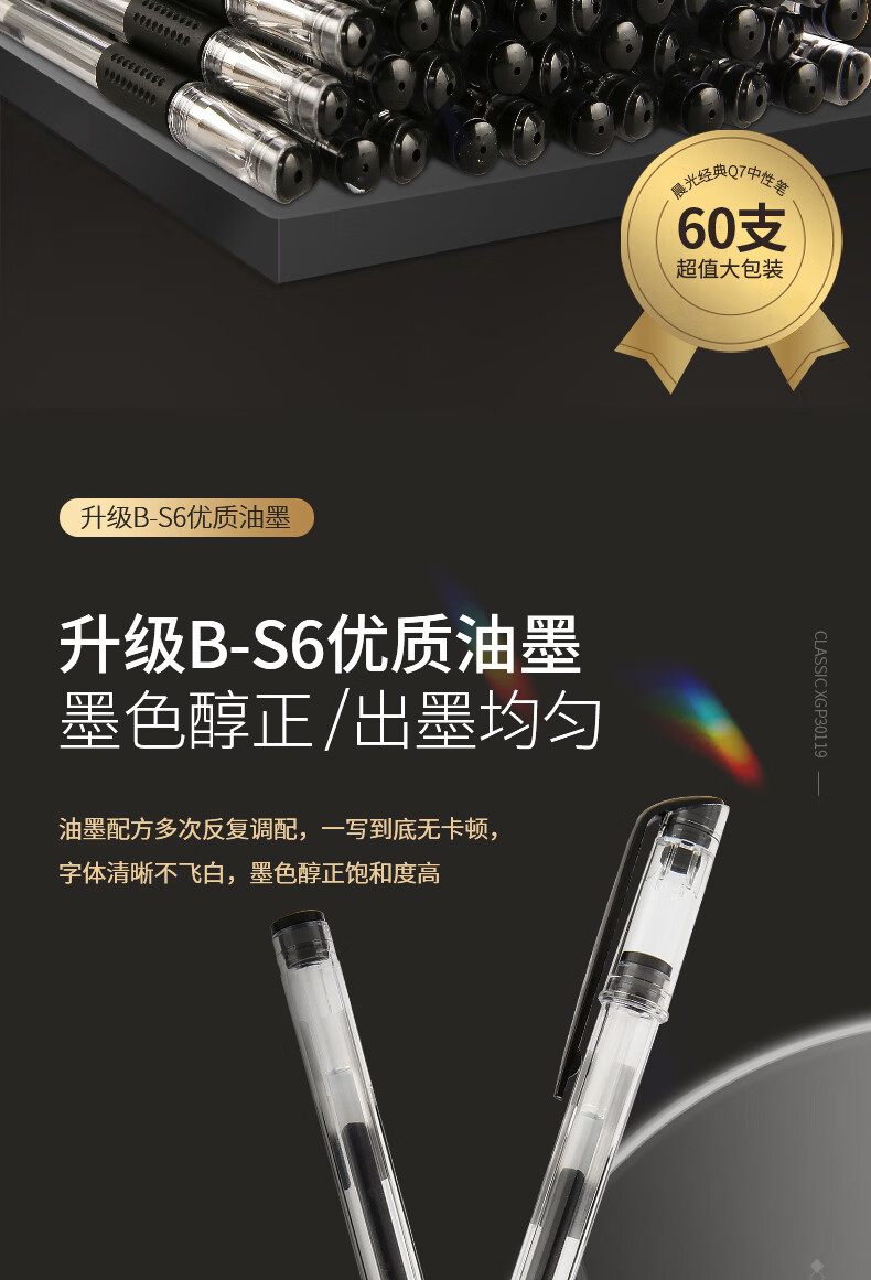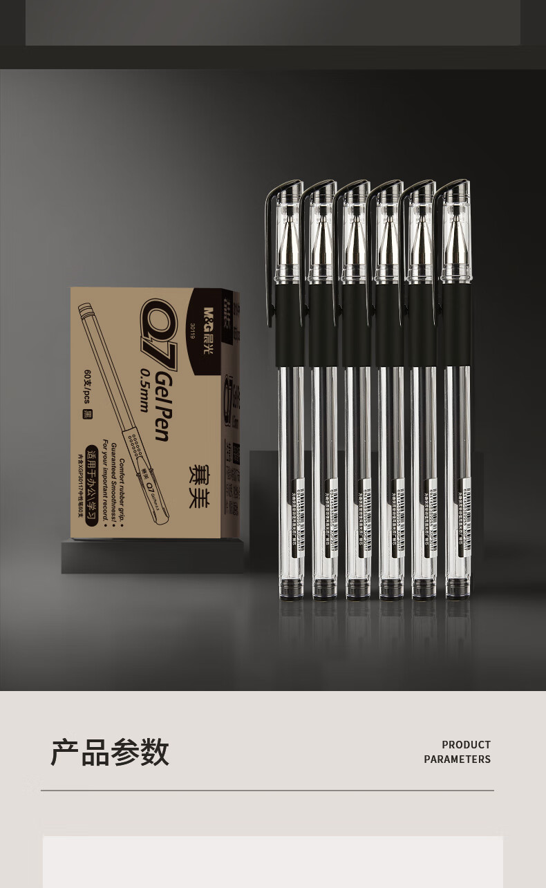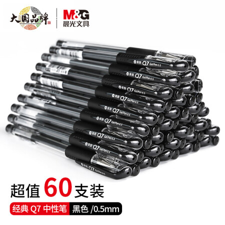 晨光 M&G 文具60支0.5mm中性笔签字笔黑色水笔Q7 办公用品XGP30119