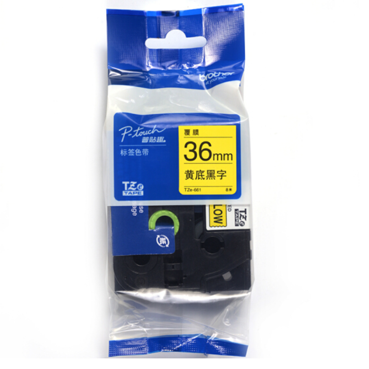 兄弟(brother) TZe-661 36mm黄底黑字标签色带