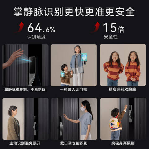 鹿客(lockin)掌心锁掌静脉智能门锁3D人脸识别猫眼大屏密码锁电子锁V5 Max右开