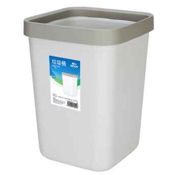 得力/deli 10L 塑料制品 垃圾桶 得心压圈方形垃圾桶 无盖 浅灰 10L 中号带压圈