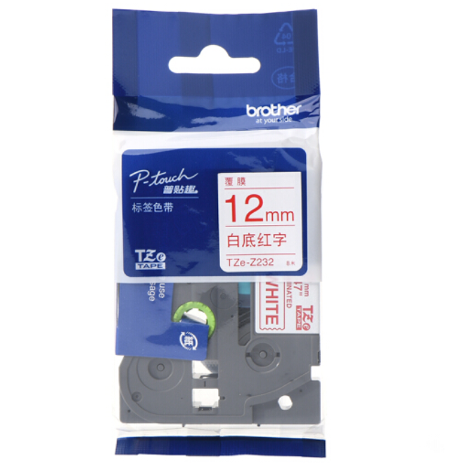 兄弟(brother)TZe-Z232 12mm白底红字标签色带