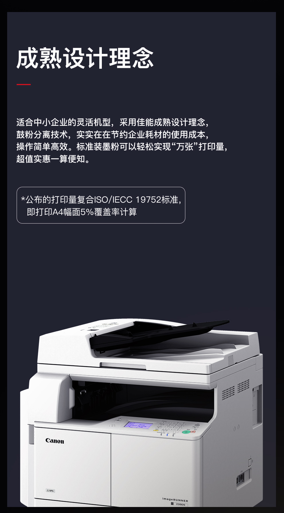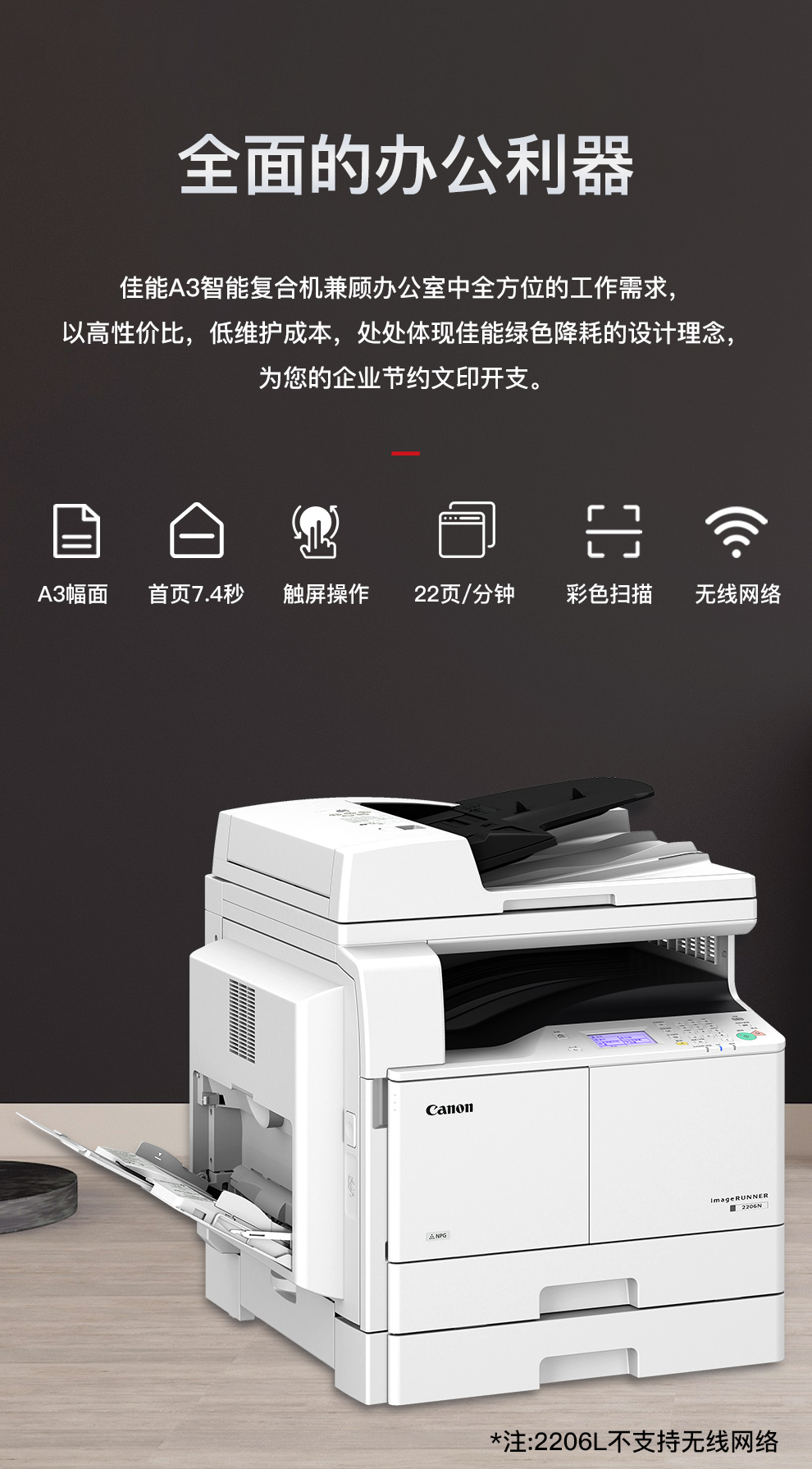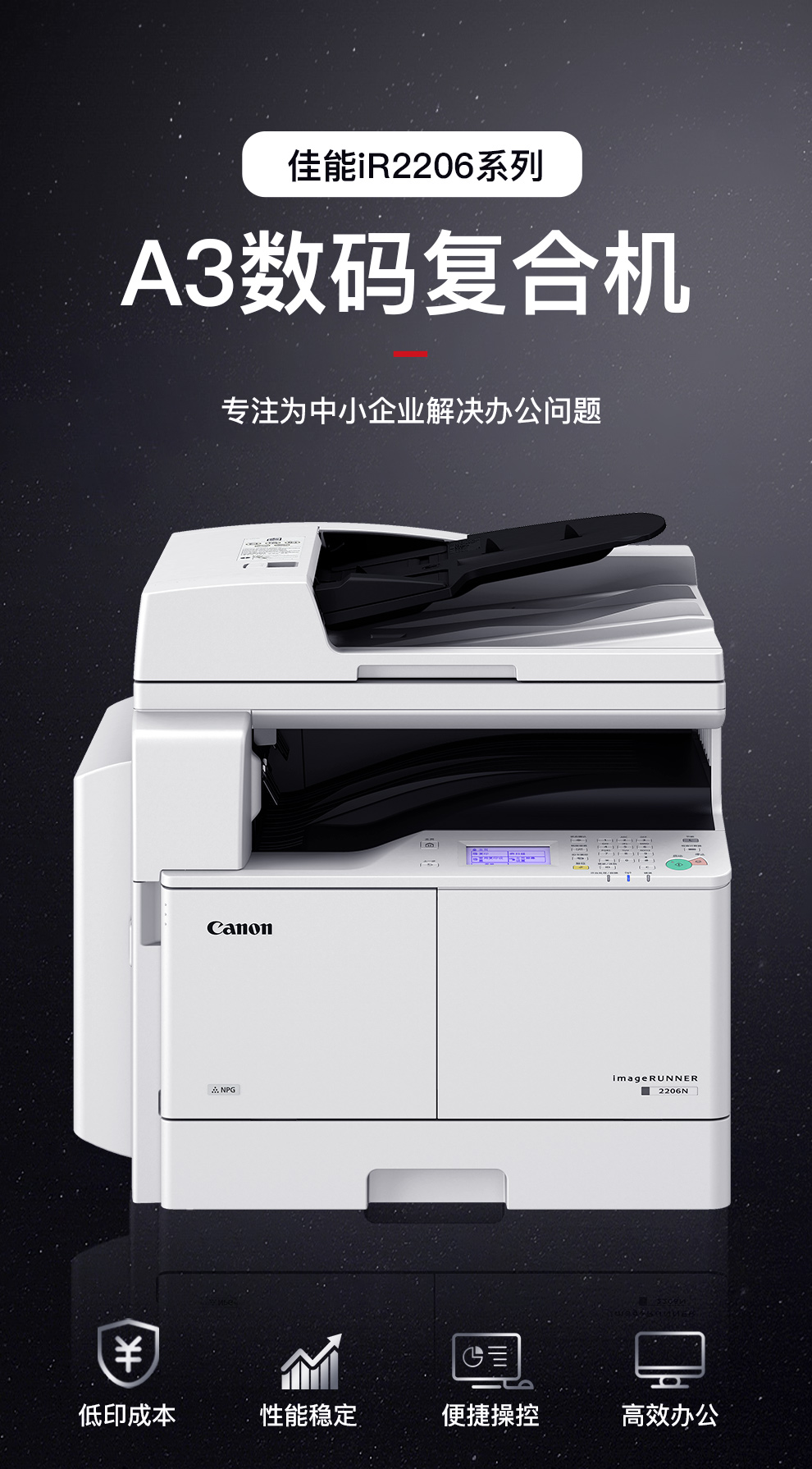 佳能(CANON)iR2206AD 多功能一体机 A3黑白激光数码复合机一体机含输稿器(打印/复印/扫描/WiFi)