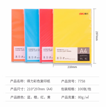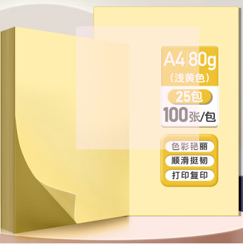 得力/deli A4-80g 复印纸 浅黄 单包100张