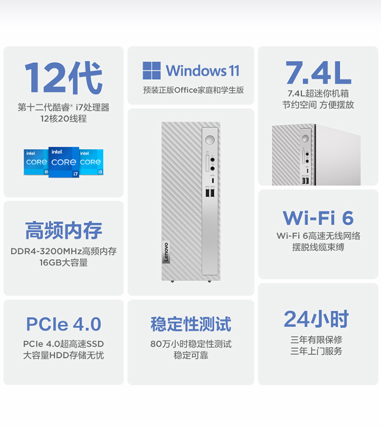 英特尔酷睿i7台式机电脑整机(CUP:12代i7-12700;内存16G DDR4 3200MHZ; 硬盘:1T+256G NVMe高速固态硬盘 SSD win11;网卡:802.11ax Wi-Fi6 蓝牙无线网卡 千兆有线网卡;显示器:来酷27英寸显示器 微边 IPS硬屏 FHD分辨率 1670万色数 低蓝光无频闪