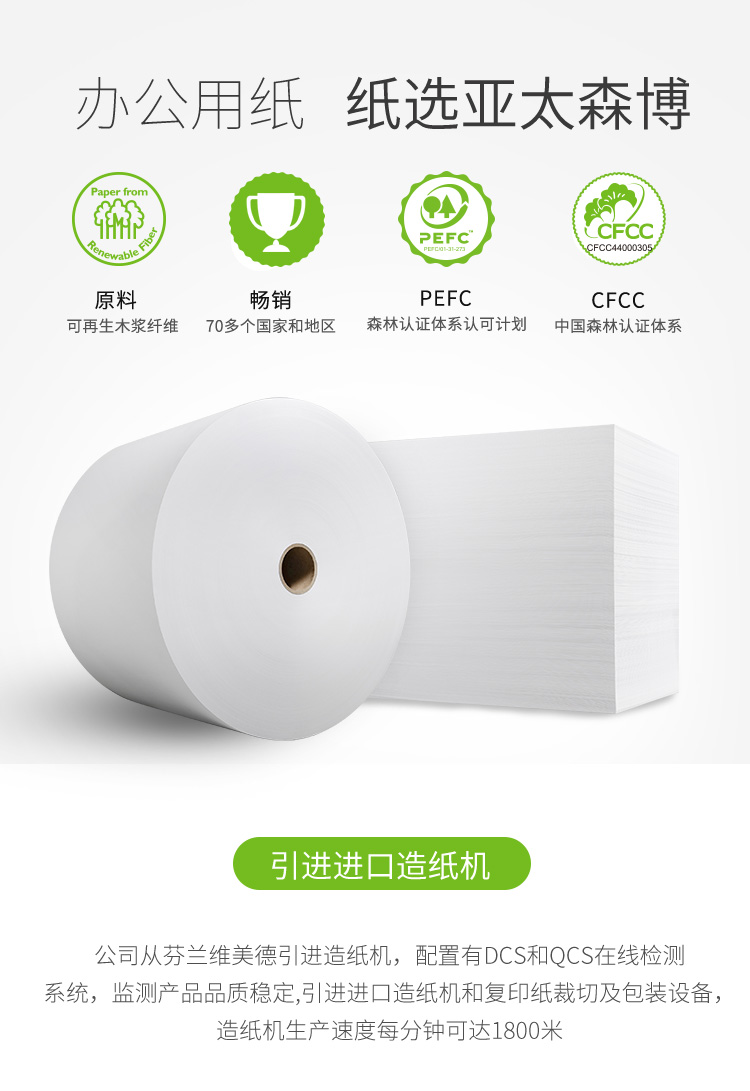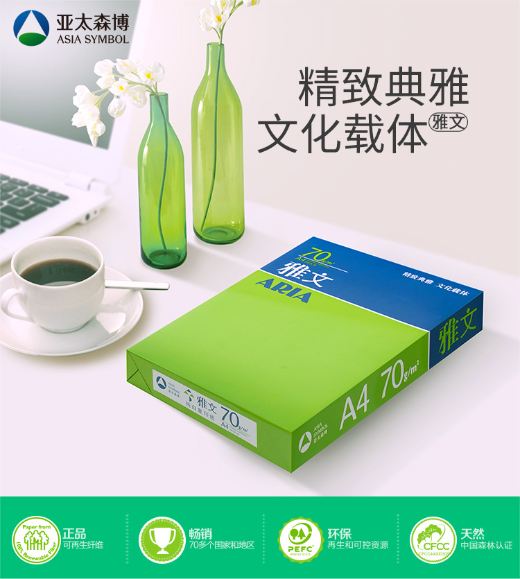 亚太森博 雅文70g A4纸 复印纸打印流畅 500张/包 5包整箱(2500张)(百旺系列)