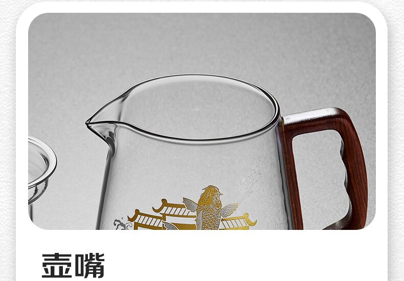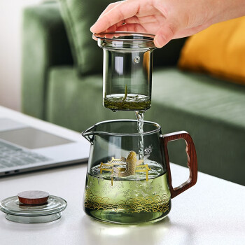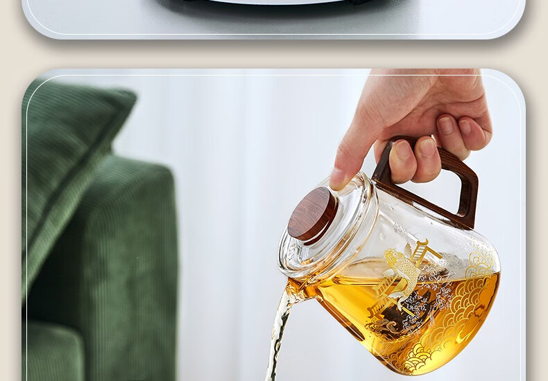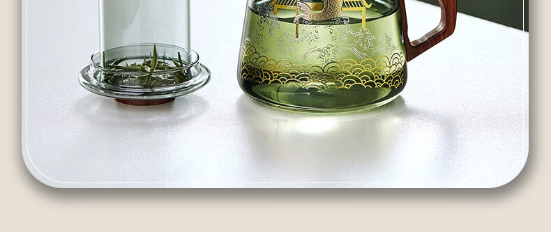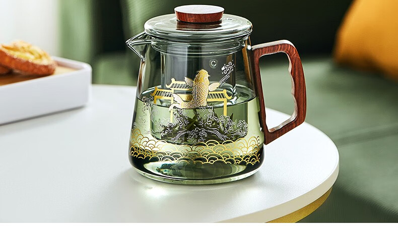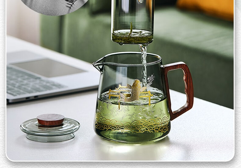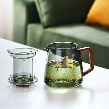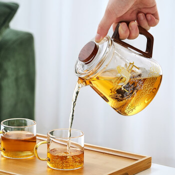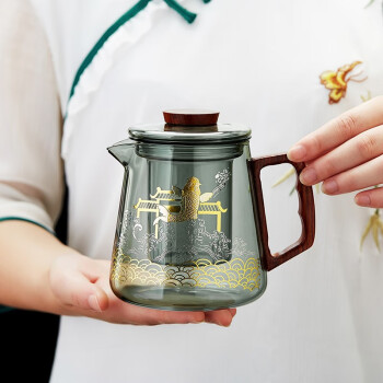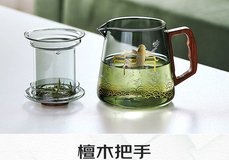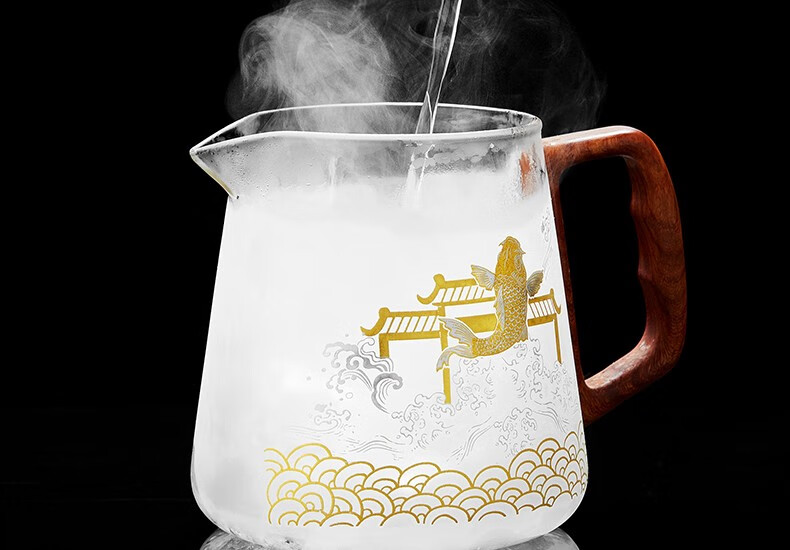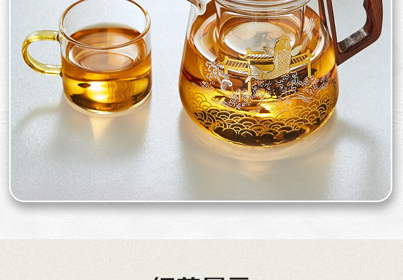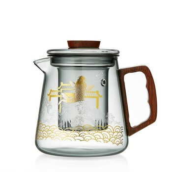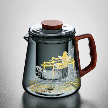 美斯尼 茶壶玻璃泡茶壶创意茶具加厚耐热玻璃泡茶器 鱼跃龙门 墨色