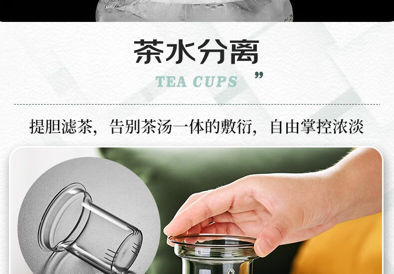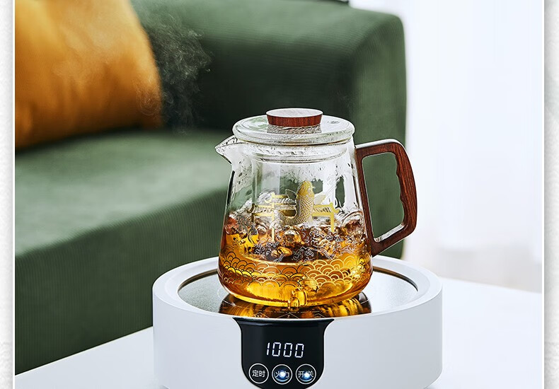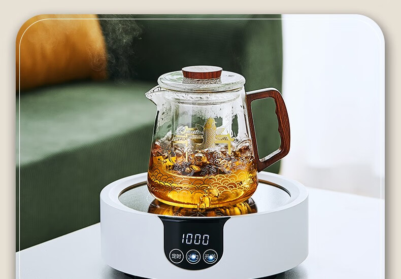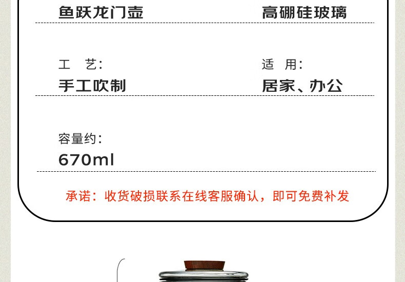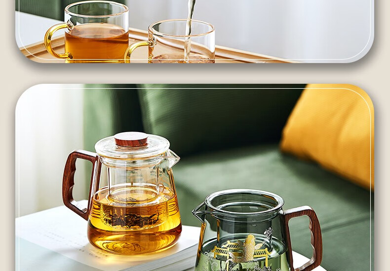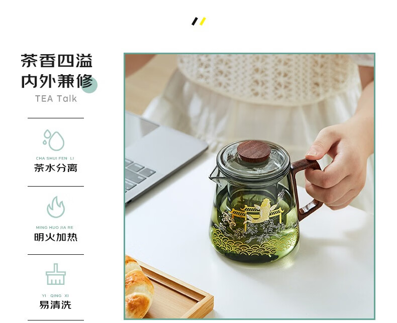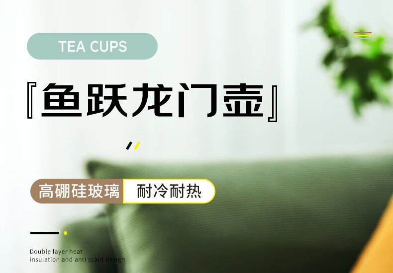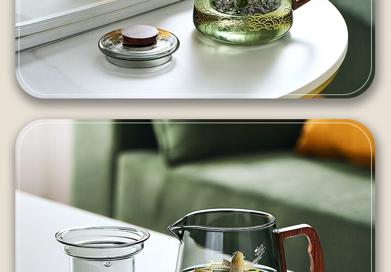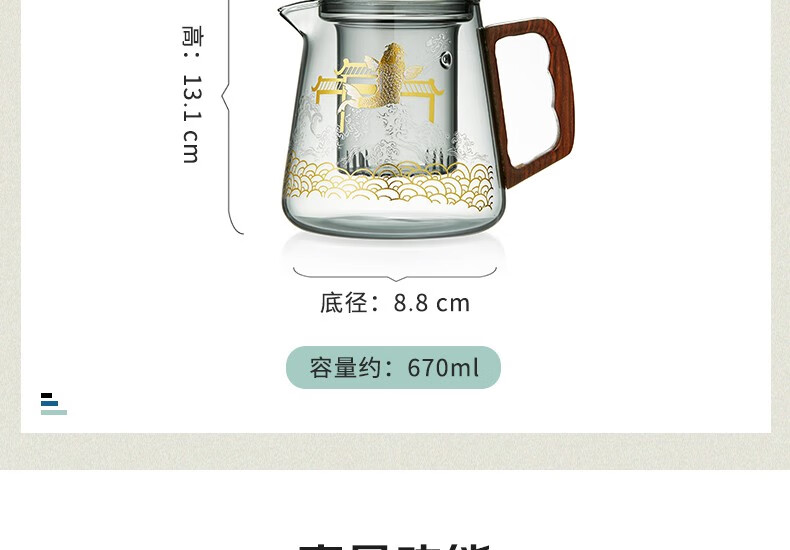 美斯尼 茶壶玻璃泡茶壶创意茶具加厚耐热玻璃泡茶器 鱼跃龙门 墨色