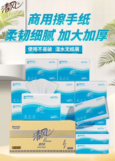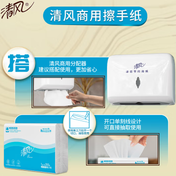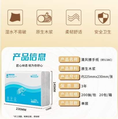 清风/kyfen B913AC 卫生间专用擦手纸 1层200抽*20包抽取式洗手间商用原木抹手纸
