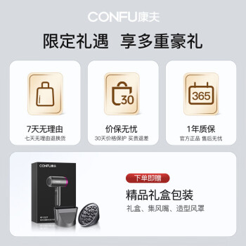 康夫(CONFU)电吹风机家用生日礼物大功率低辐射负离子护发孕妇速干送女友吹风筒 KF-3127