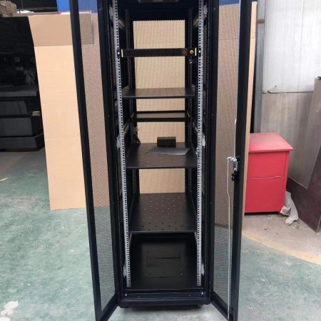 一对竖线板,一条8孔10安铝合金电源,三块层盘,一组风机,前网门,后双开网门。
