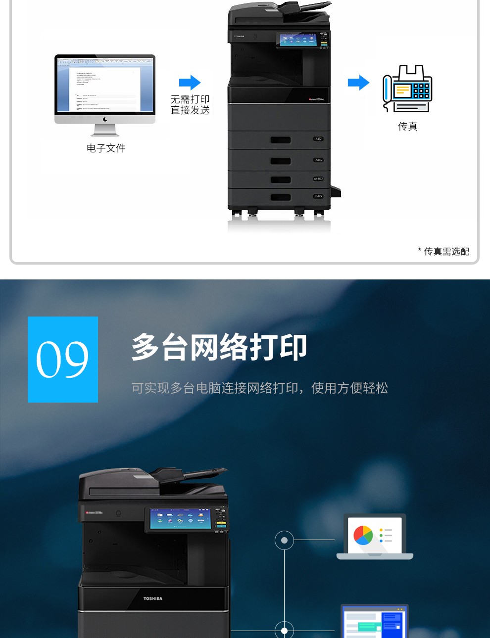 东芝 3118A 多功能一体机 黑白激光网络打印机多功能一体机彩色扫描 3118A+双纸盒+双面输稿器