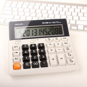 得力1552语音型计算机 12位电脑按键财务银行专用大号计算器 白色1552
