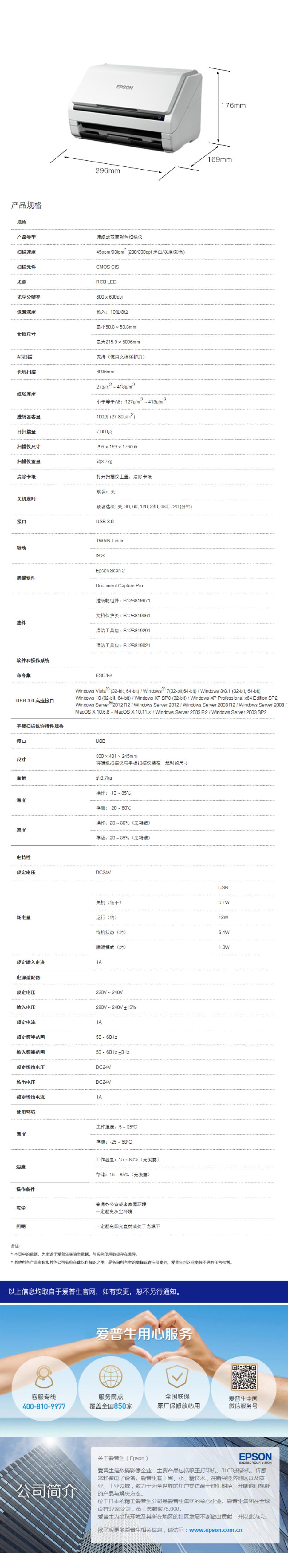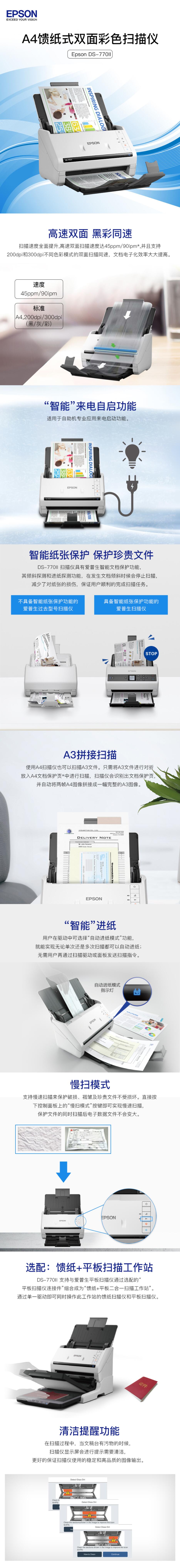 爱普生(EPSON)DS-770 扫描仪 高速高清馈纸式双面彩色文档扫描仪 DS-770升级版