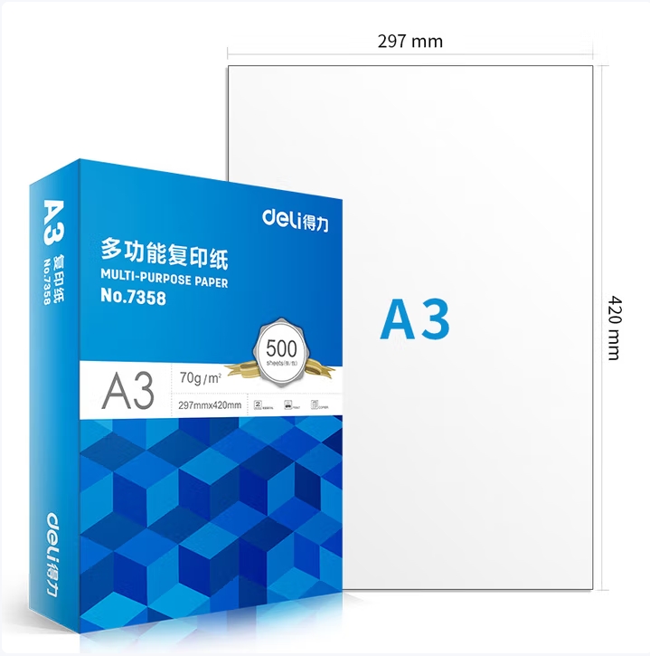 得力/deli 7396 复印纸 A3 70g 500张/包 单包装