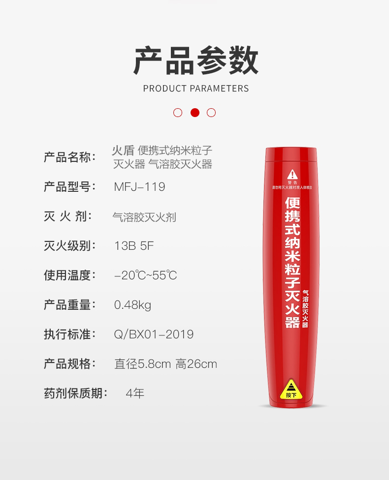 火盾MFJ-119 便携式微粒子灭火器 便携式 气溶胶灭火器 车载灭火器