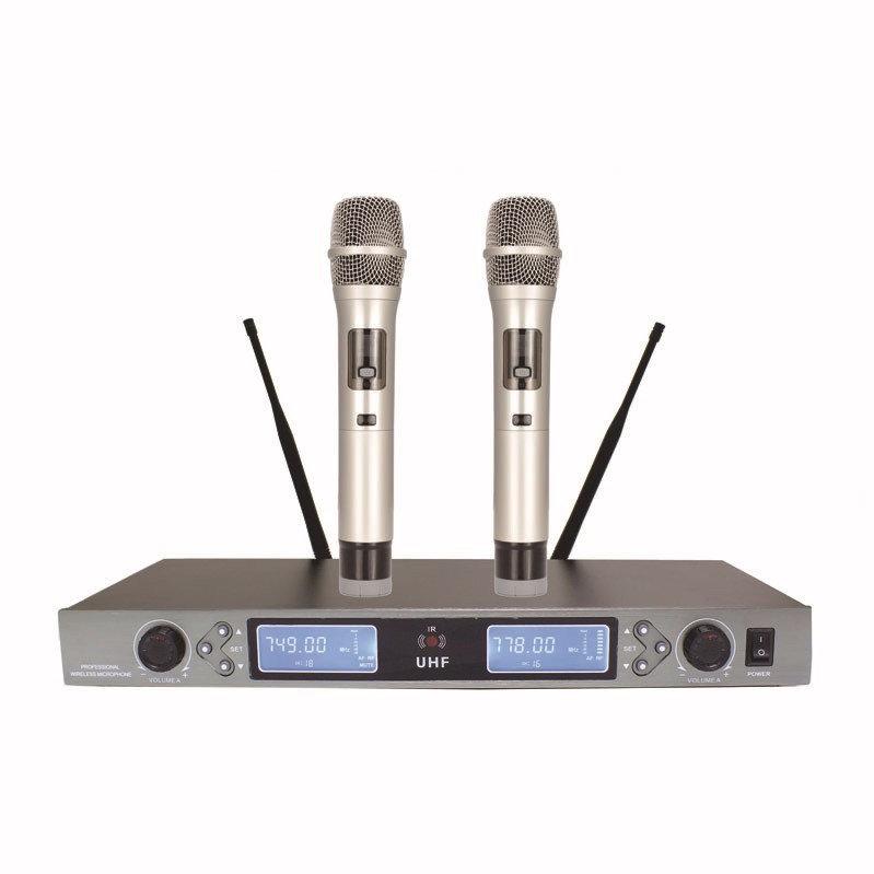 行业首创自动人手感应专利技术,话筒离开人手静止后3内秒自动静音(任意方向,任意角度放置均可),5分钟后自动节能进入待机状态,15分钟后自动关机并且彻底切断电源,是一款全新概念的智能化、自动化无线麦克风 ◆ 全新的音频电路构架,高音细腻,中低频强劲,特别是在声音的细节上具有完美的表现力。超强的动态跟踪能力使得远/近距离拾音收放自◆ 全新概念的数字导频技术,彻底解决KTV包房相互串频现象,永不串频! ◆ 配置有啸叫抑制功能电路,调试更简单 ◆ 自动搜索无干扰信道功能,安装更便捷 ◆ 输出最大音量可自由限制,适应范围更广 ◆ 主机可灵活设定使用次数◆ UHF频段,锁相环(PLL)频率合成◆ 100×2个信道,信道间隔250KHz◆ 超外差二次变频设计,具备极高的接收灵敏度◆ 射频部分采用多级高性能的介质滤波器,具备优良的抗干扰能力 ◆ 第一中频采用声表滤波器,第二中频采用三级陶瓷滤波器,很好的提高了抗干扰能力◆ 特别设计的静音电路,完全消除麦克风开启和关闭的冲击噪声◆ 麦克风使用易购的5号电池,续用时间达6—10小时◆ 麦克风采用独特的升压设计,电池电量下降不影响手咪整体性能 ◆ 理想环境操作半径达80米,适用于各种要求场合◆ 默认配置为带液晶屏蓝色背光,铝合金的麦克风管体 ◆ 具备可调发射功率和可调静噪门限,接收机后面板设外置静噪控制旋钮,可根据需要在10米-80米之间灵活设置有效操作半径◆ 具备红外自动对频功能,可使麦克风快速同步到接收机的工作信道 ◆ KTV工程专用机型,两个话筒,一个主机。轻松配置100间以上KTV包房,产品结构设计独特,维护快速简单