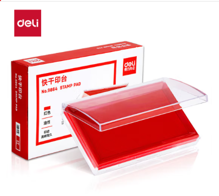 得力/deli 9864 印台/印泥/印油 内盘面116*66mm透明外壳方形 快干印台印泥 红色