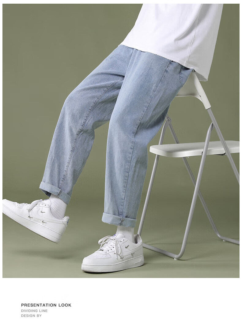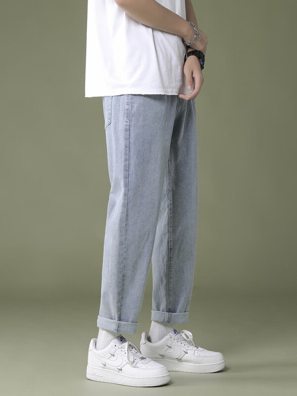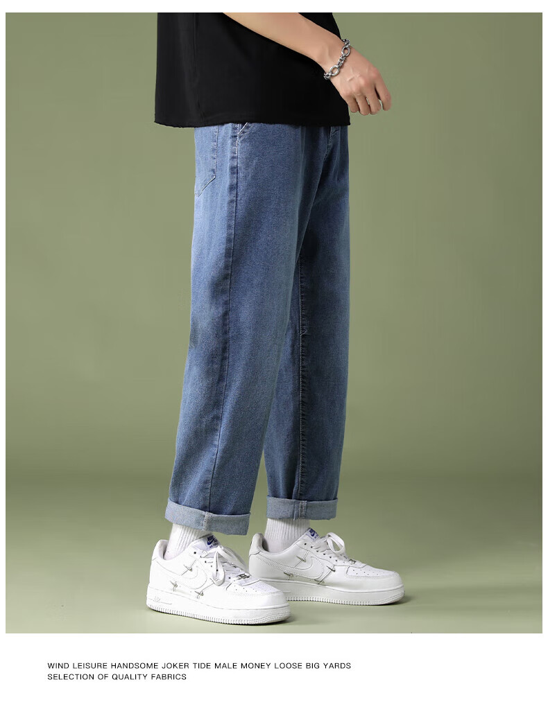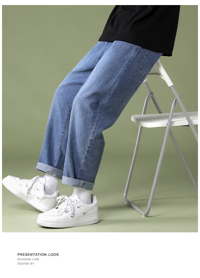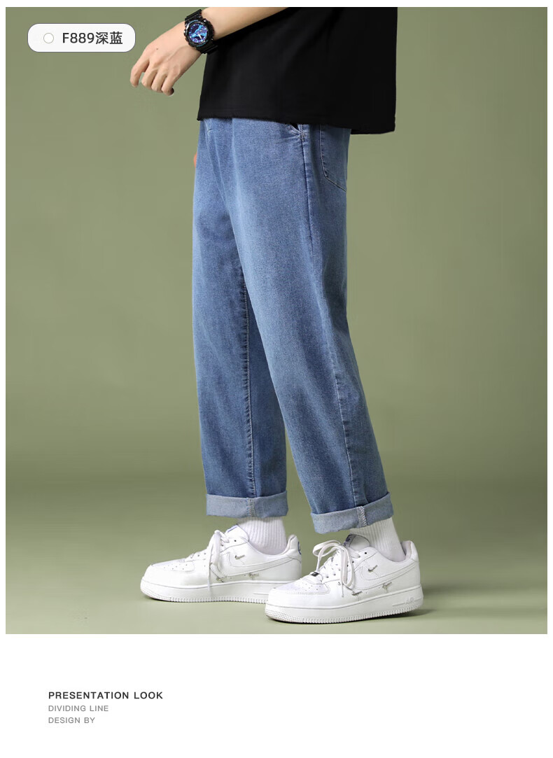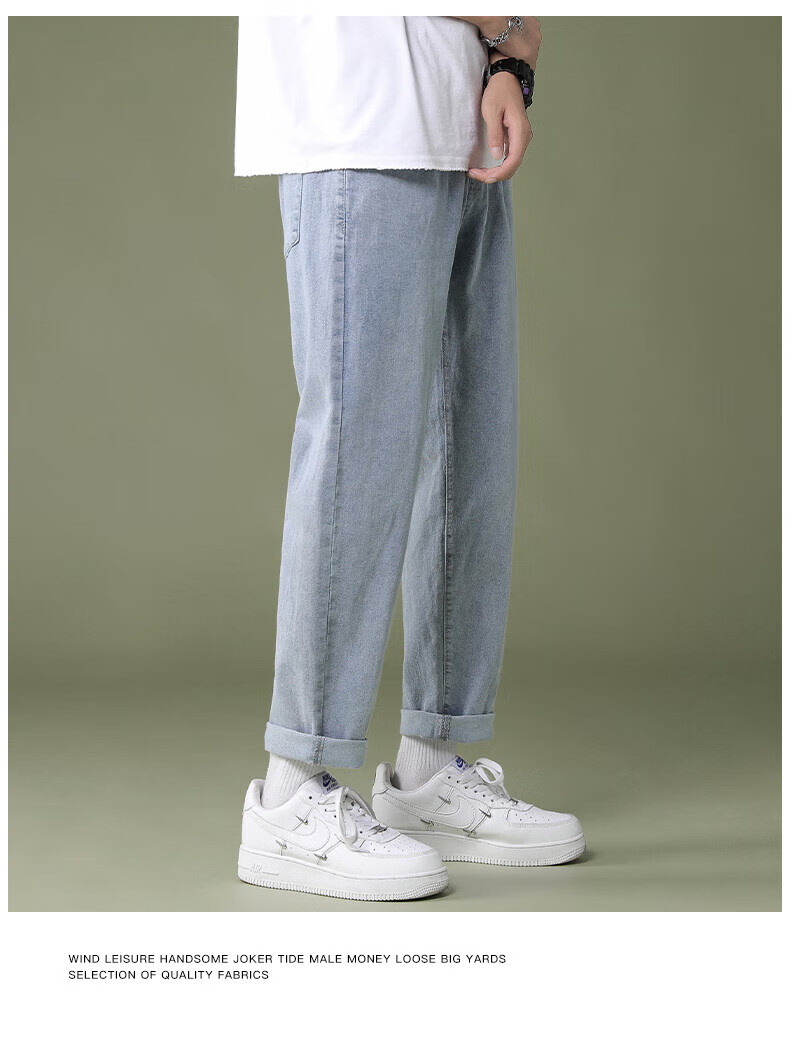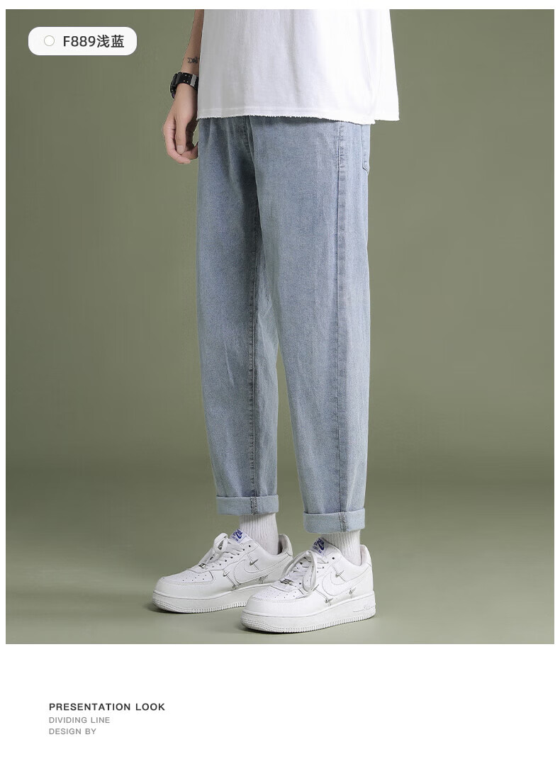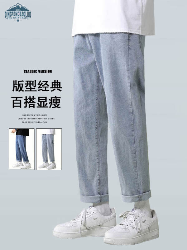 顶峰保罗(Dingfengbaoluo)牛仔裤男春夏美式宽松直筒百搭潮牌男士休闲长裤子F889浅蓝L