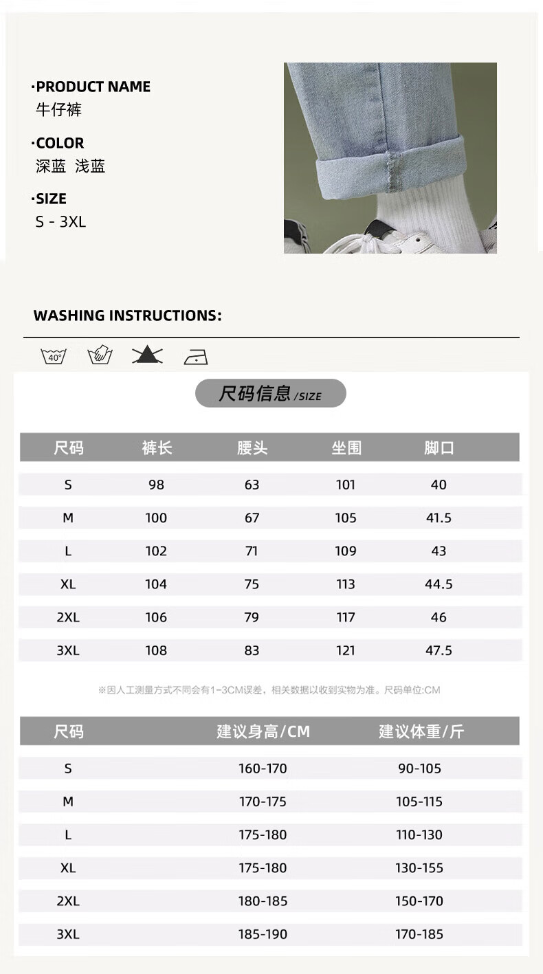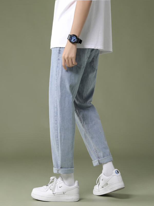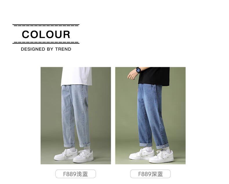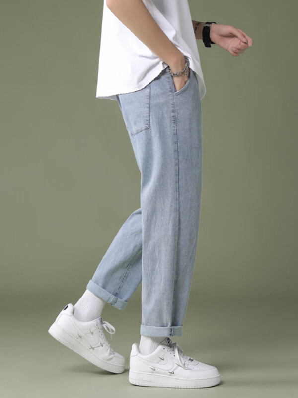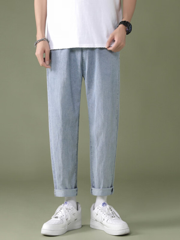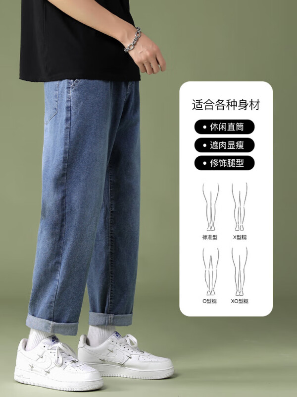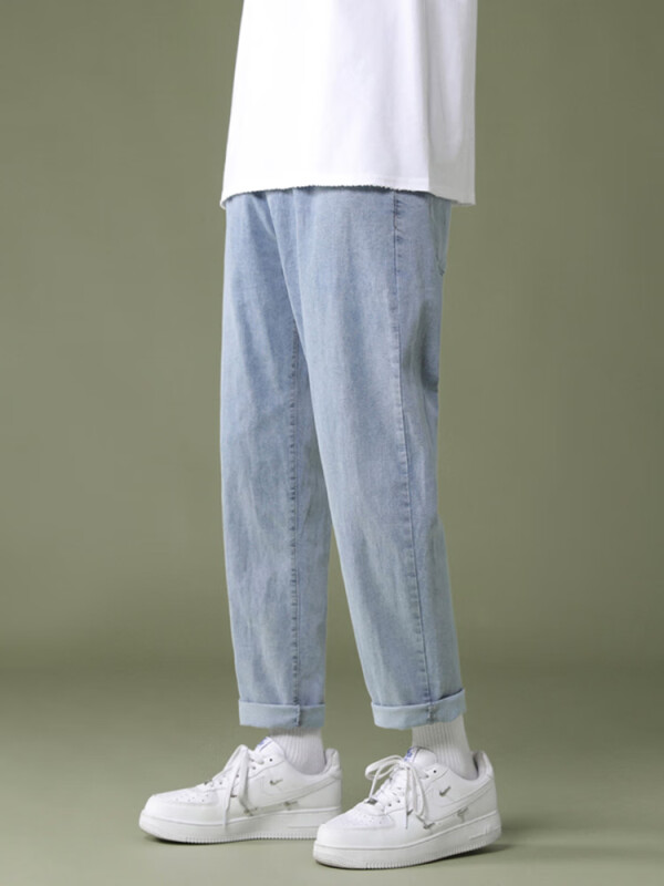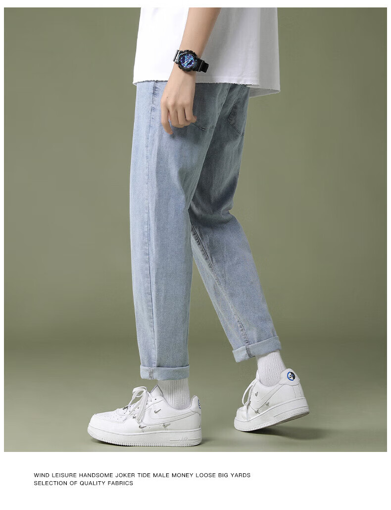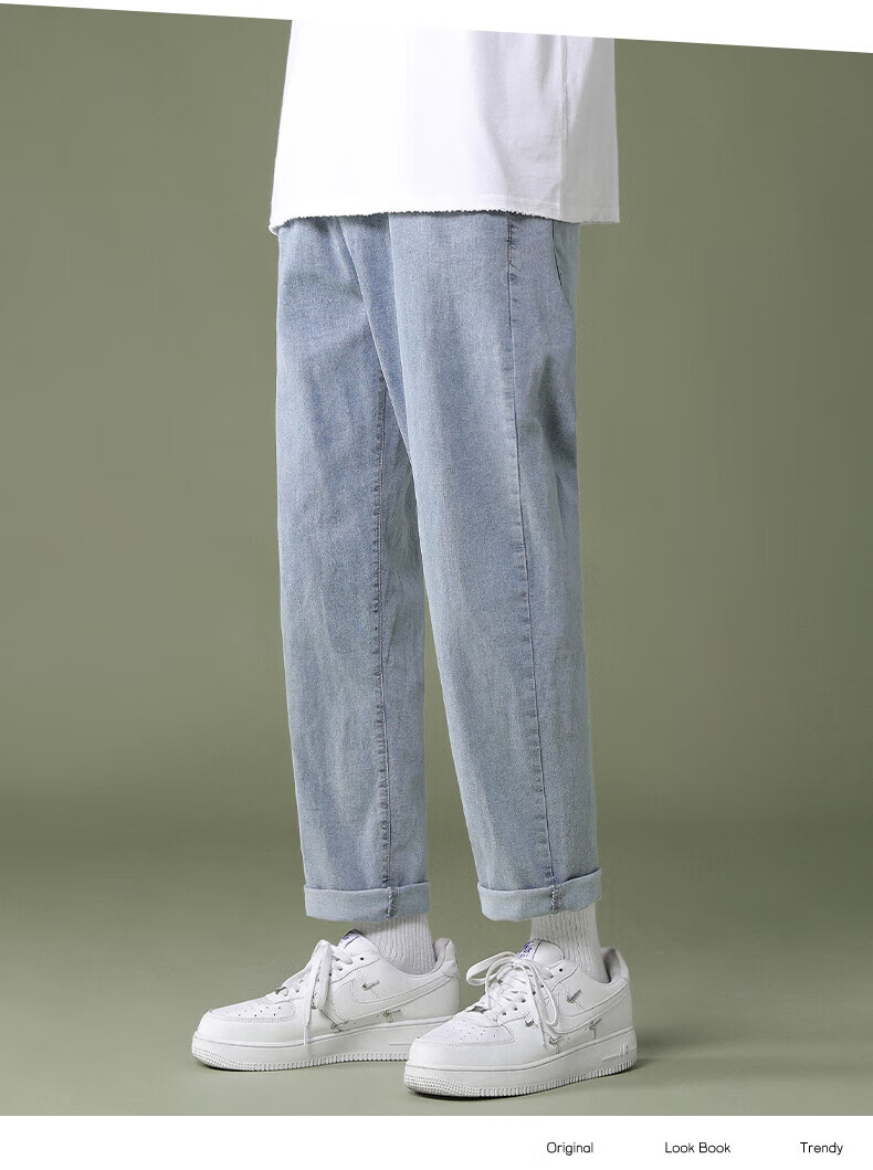 顶峰保罗(Dingfengbaoluo)牛仔裤男春夏美式宽松直筒百搭潮牌男士休闲长裤子F889浅蓝L