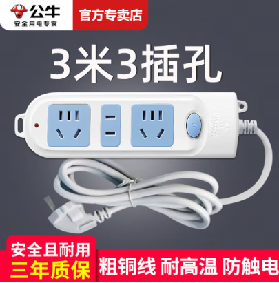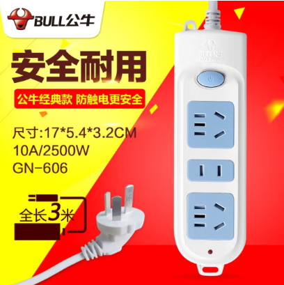 公牛/BULL GN-606A 插座 多孔插线板/拖线板/接线板/电插板/插座板 3插位总控开关 全长3米GN-606