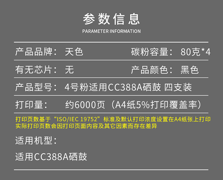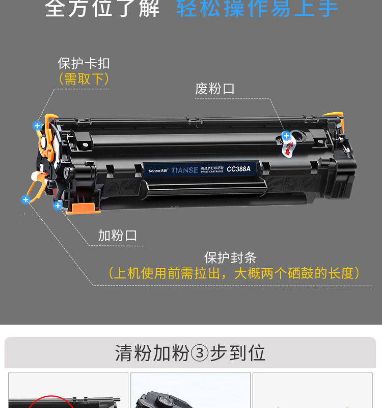 天色碳粉适用惠普388a碳粉m1136墨粉m126a/nw p1007/1008/1106/1108w m1218nfs m128fn/fp/fw打印机88a碳粉