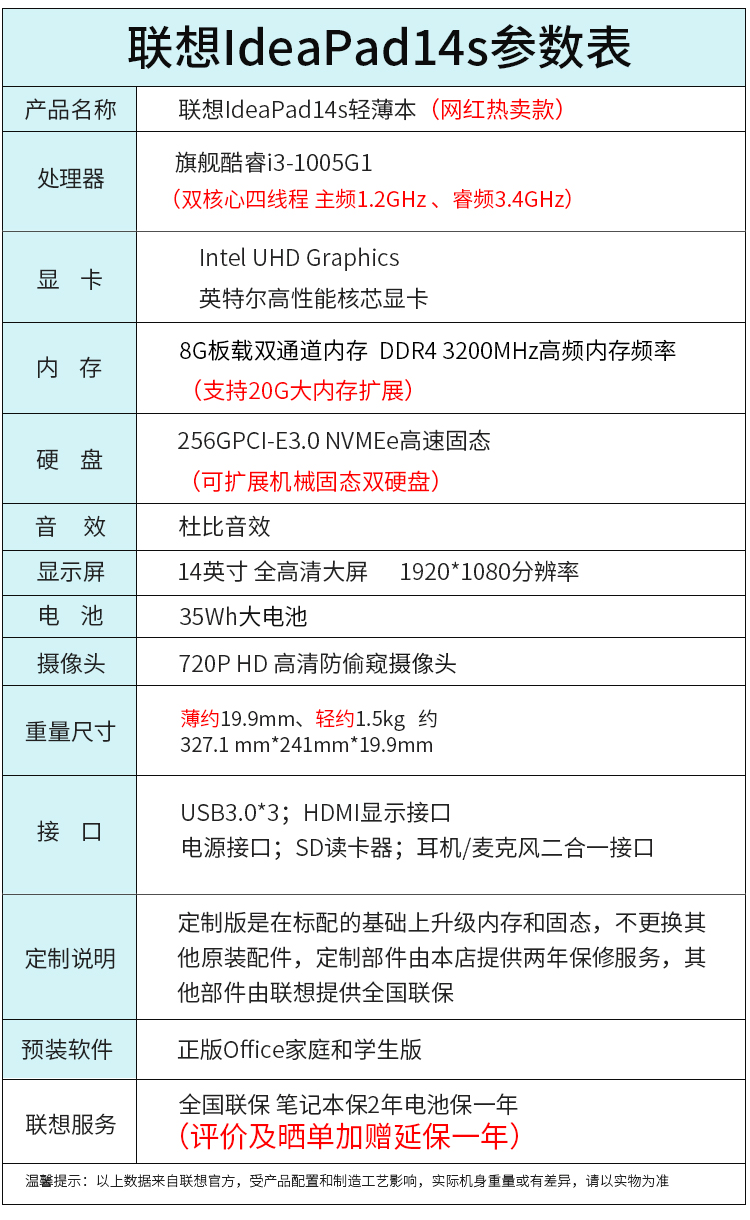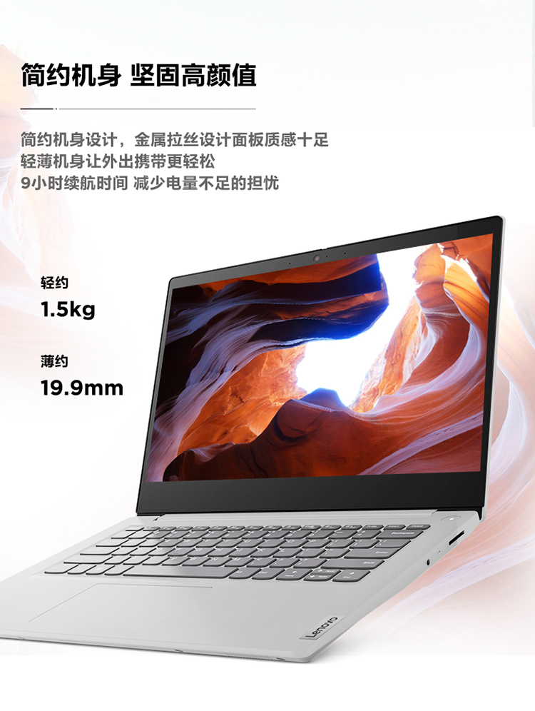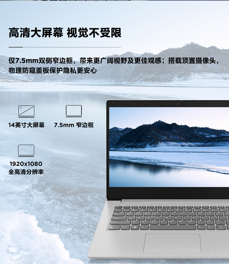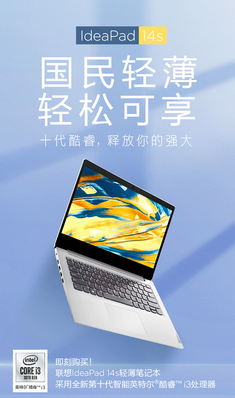 联想 IdeaPad14S 便携式计算机 14英寸全面屏超轻薄手提商务办公本 i3-1005G1 8G 512G固态 升级 全高清全面屏