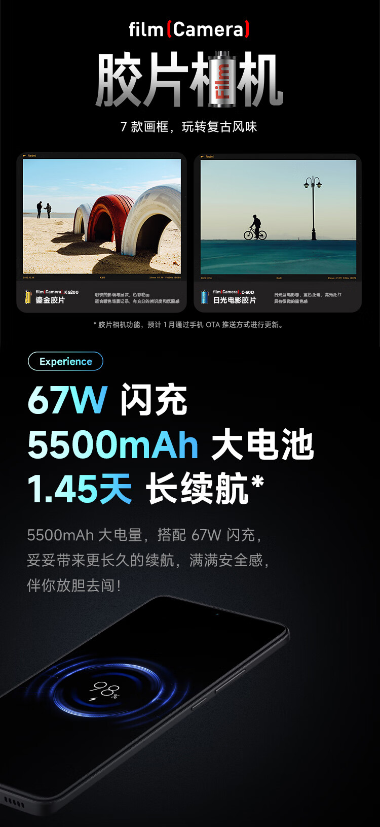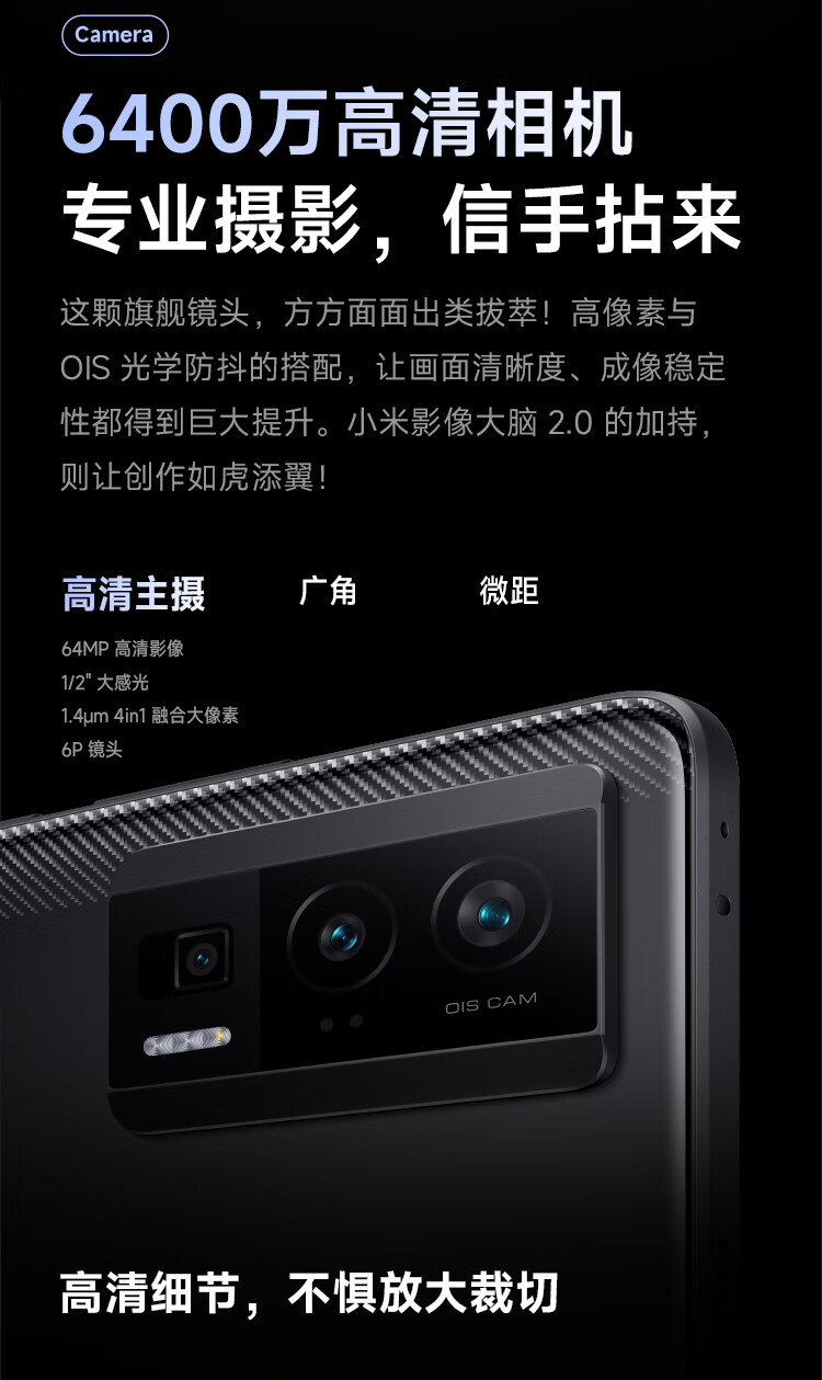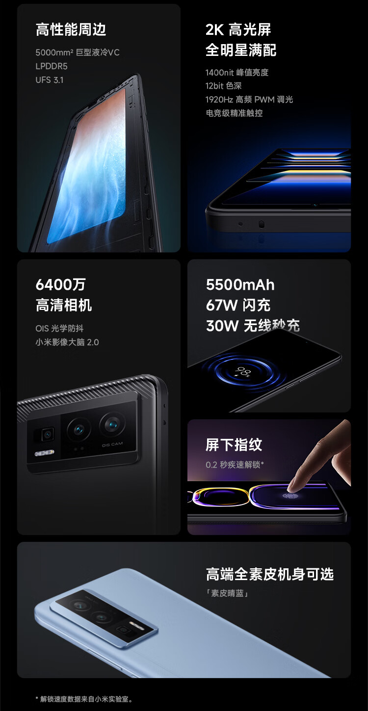Redmi K60 骁龙8+处理器 2K高光屏 6400万超清相机 5500mAh长续航 12GB+256GB 墨羽 小米红米5G