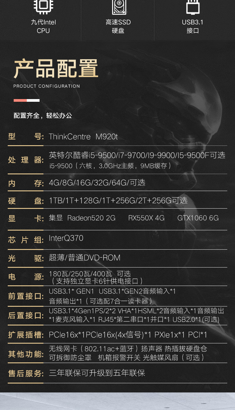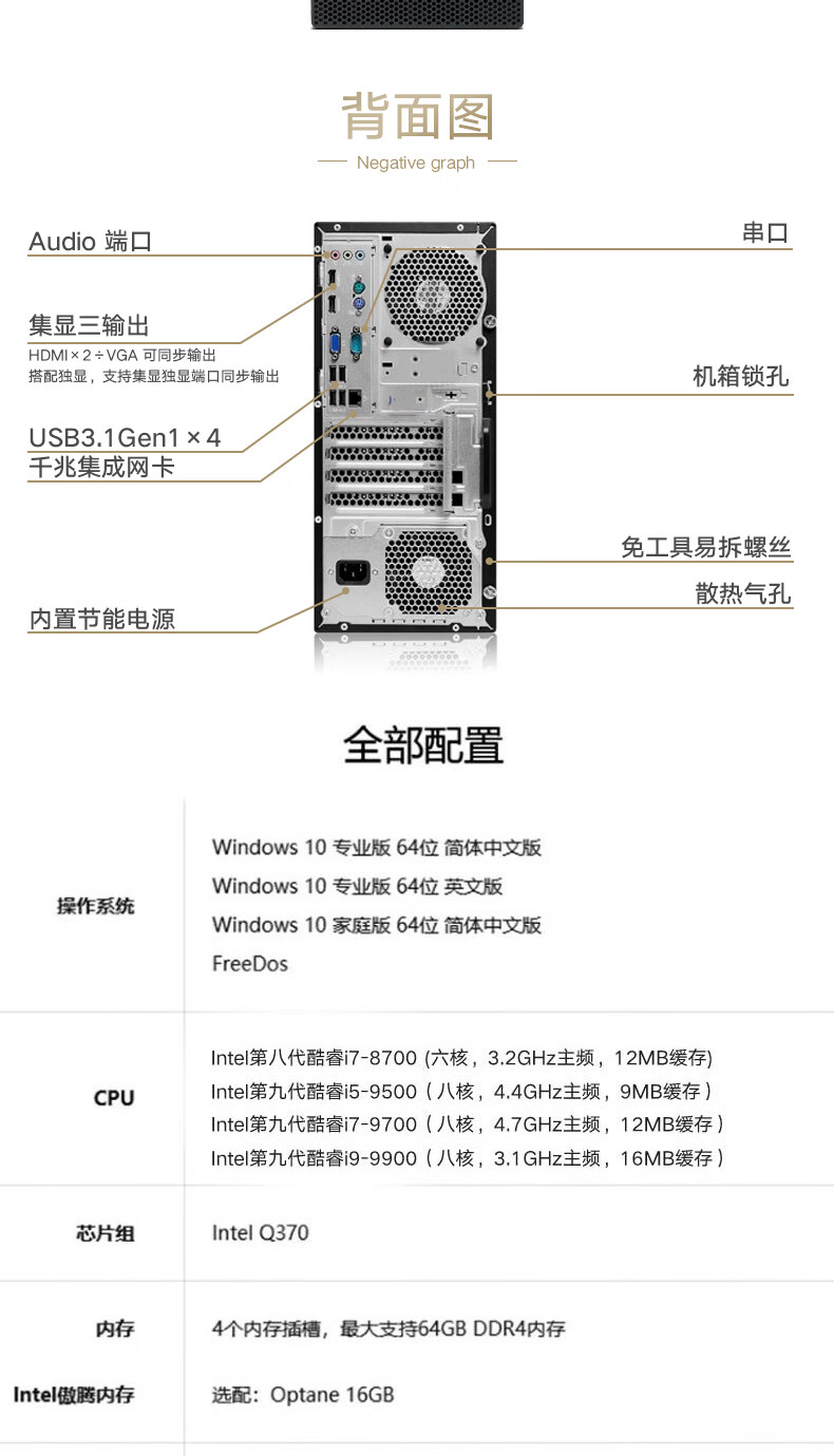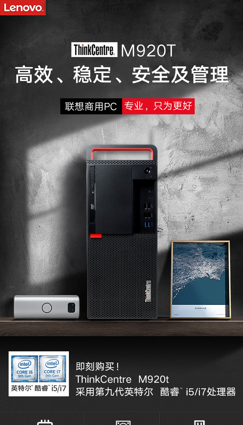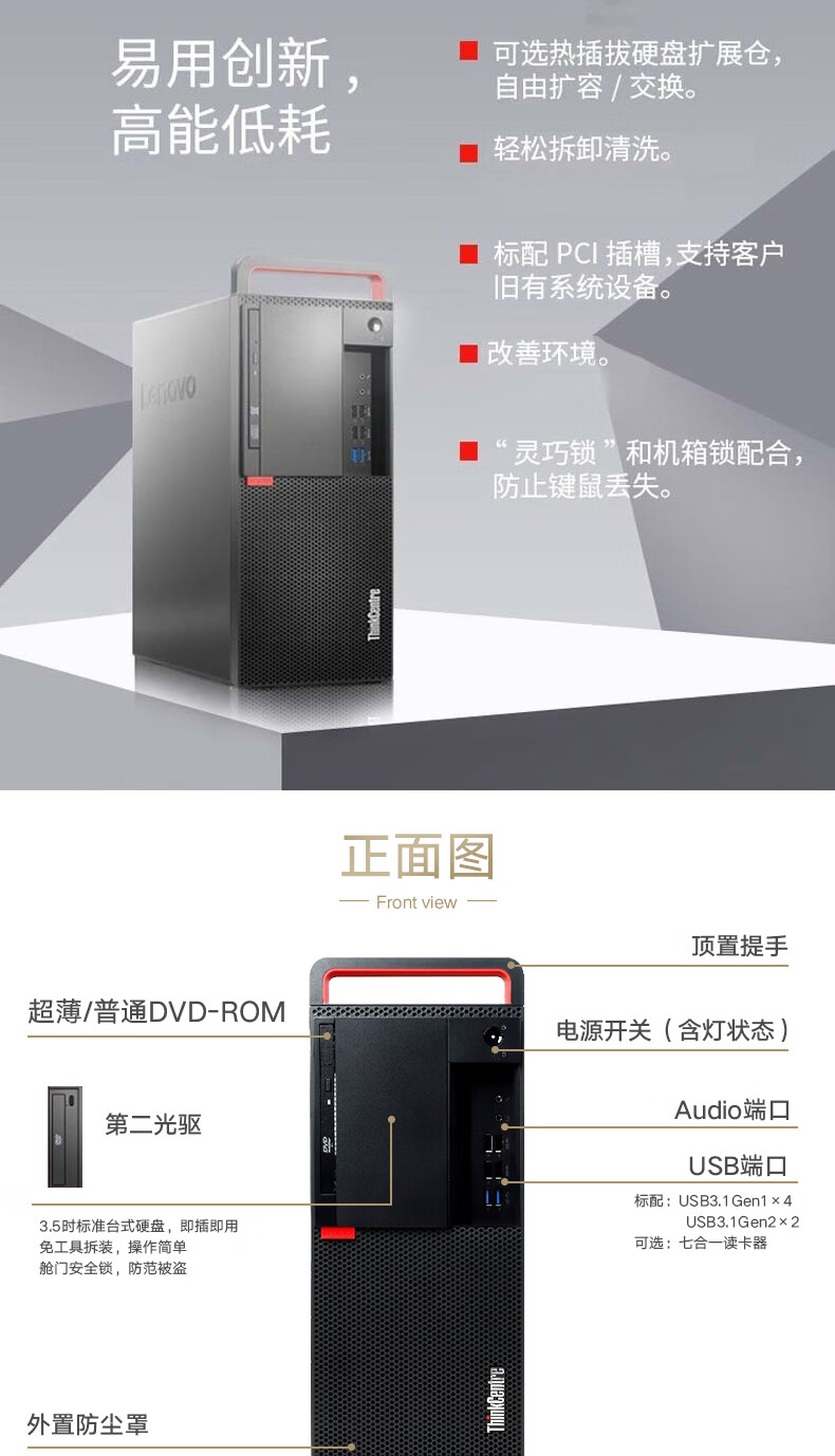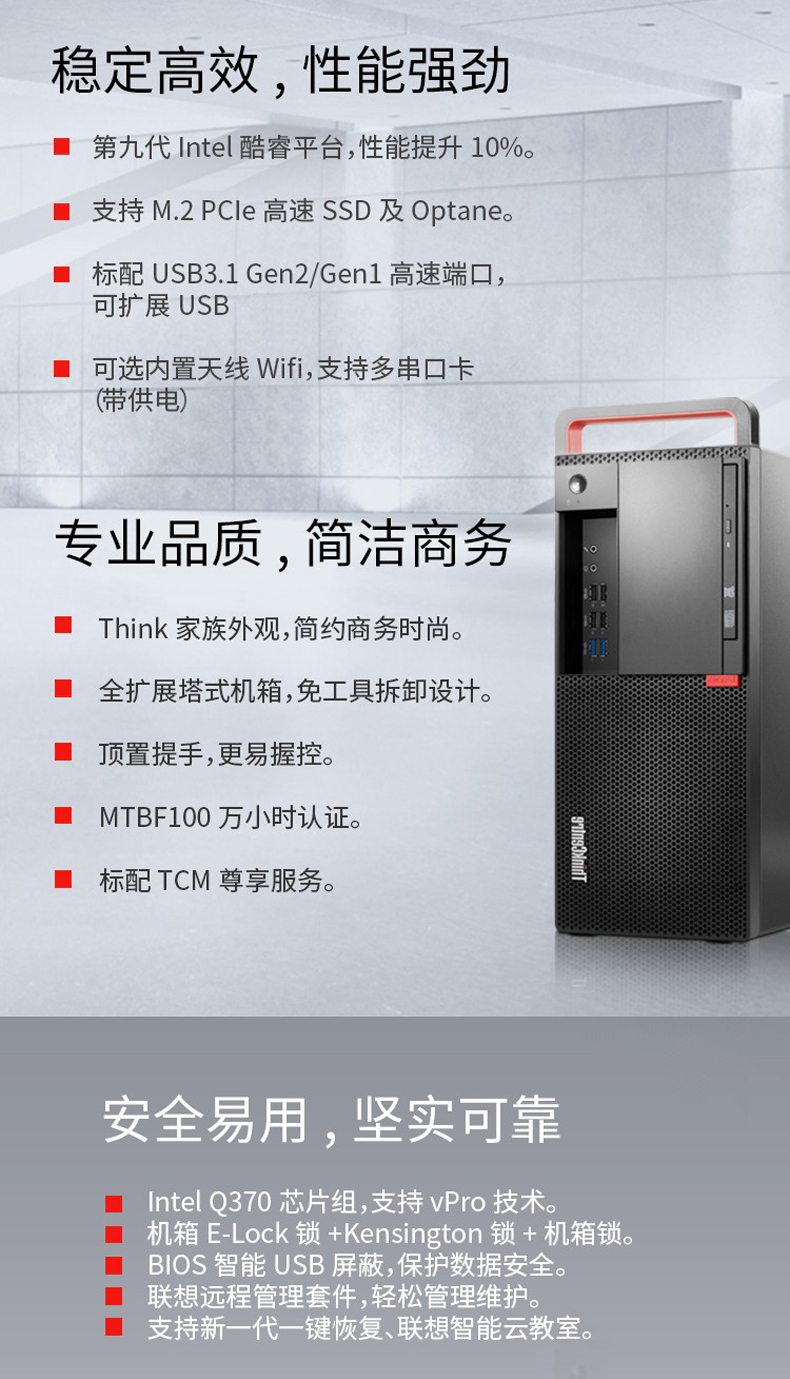 联想/LENOVO M920t 台式计算机 商用台式电脑 办公绘图设计3D渲染神州网信电脑主机整机 单主机+23.8英寸高清显示器 升级i9-9900丨16G丨2T+512G丨6G