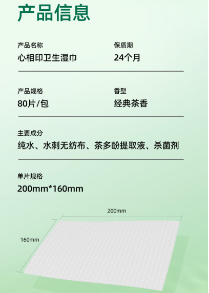 心相印/XINXIANGYIN XCG080 湿巾/手帕纸 杀菌卫生80抽*1包 全新升级加大加厚(经典茶香)