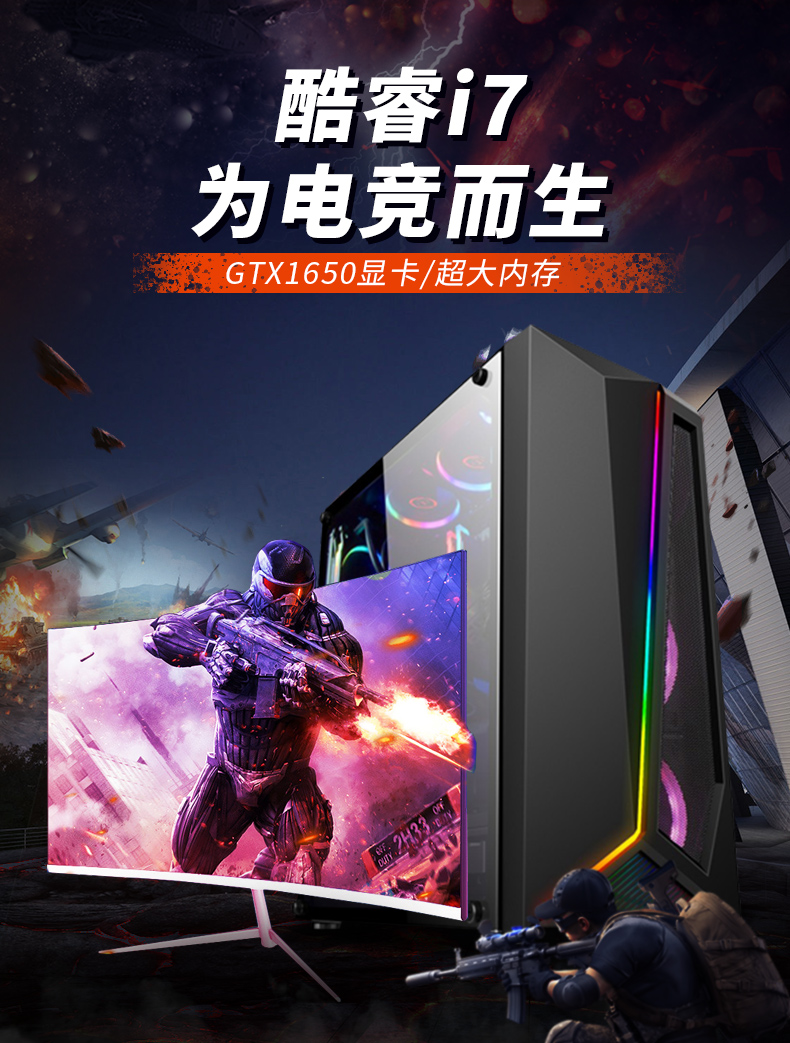 酷睿i7 RTX3060 3050 2060台式电脑 设计师家用电脑台式机主机办公商用整机 昂福镭仕 主机+24英寸显示器 酷睿i7九代/16G/256G/限升1650显卡