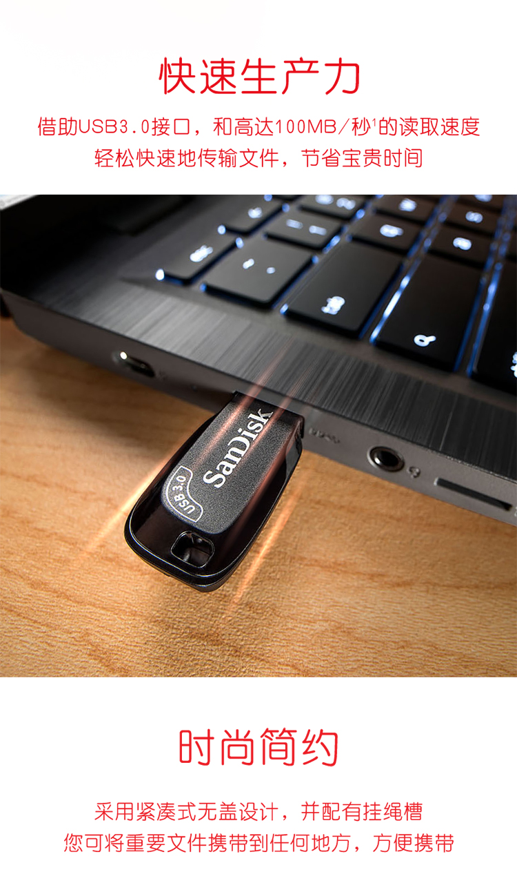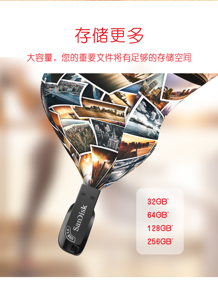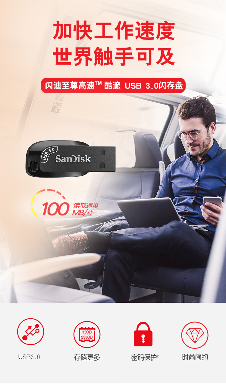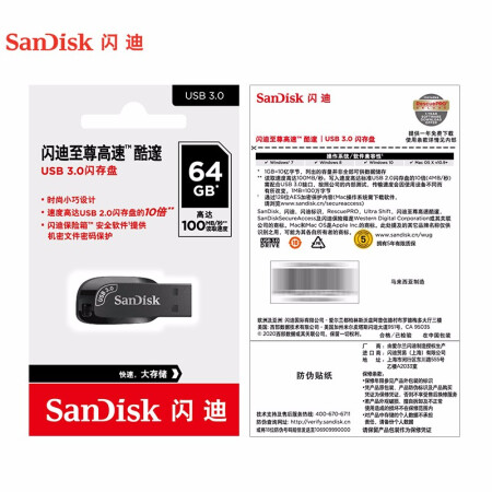闪迪 CZ410 移动存储设备 64GB USB3.0 U盘 CZ410酷邃 商务办公优选