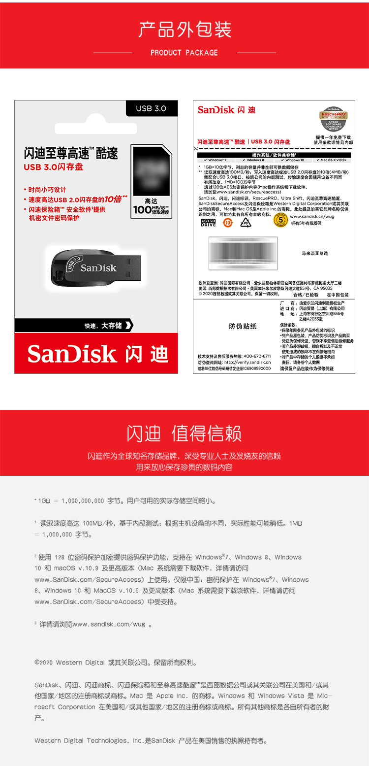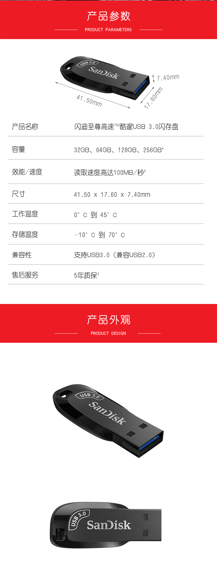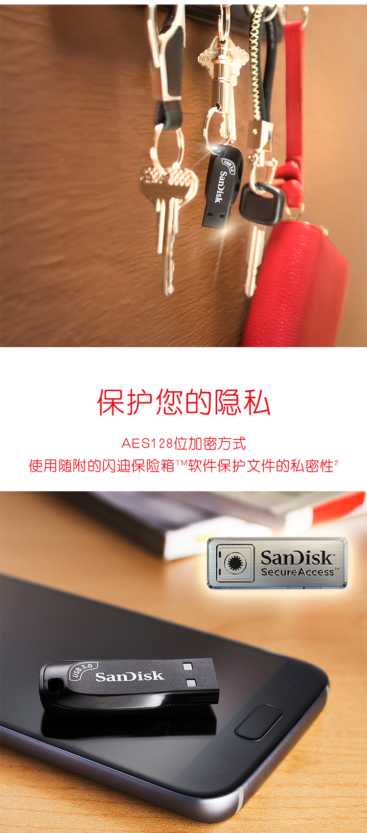 闪迪 CZ410 移动存储设备 64GB USB3.0 U盘 CZ410酷邃 商务办公优选