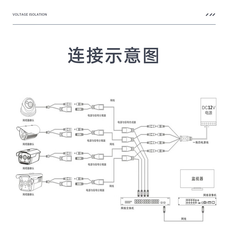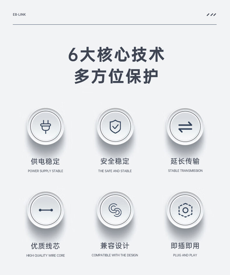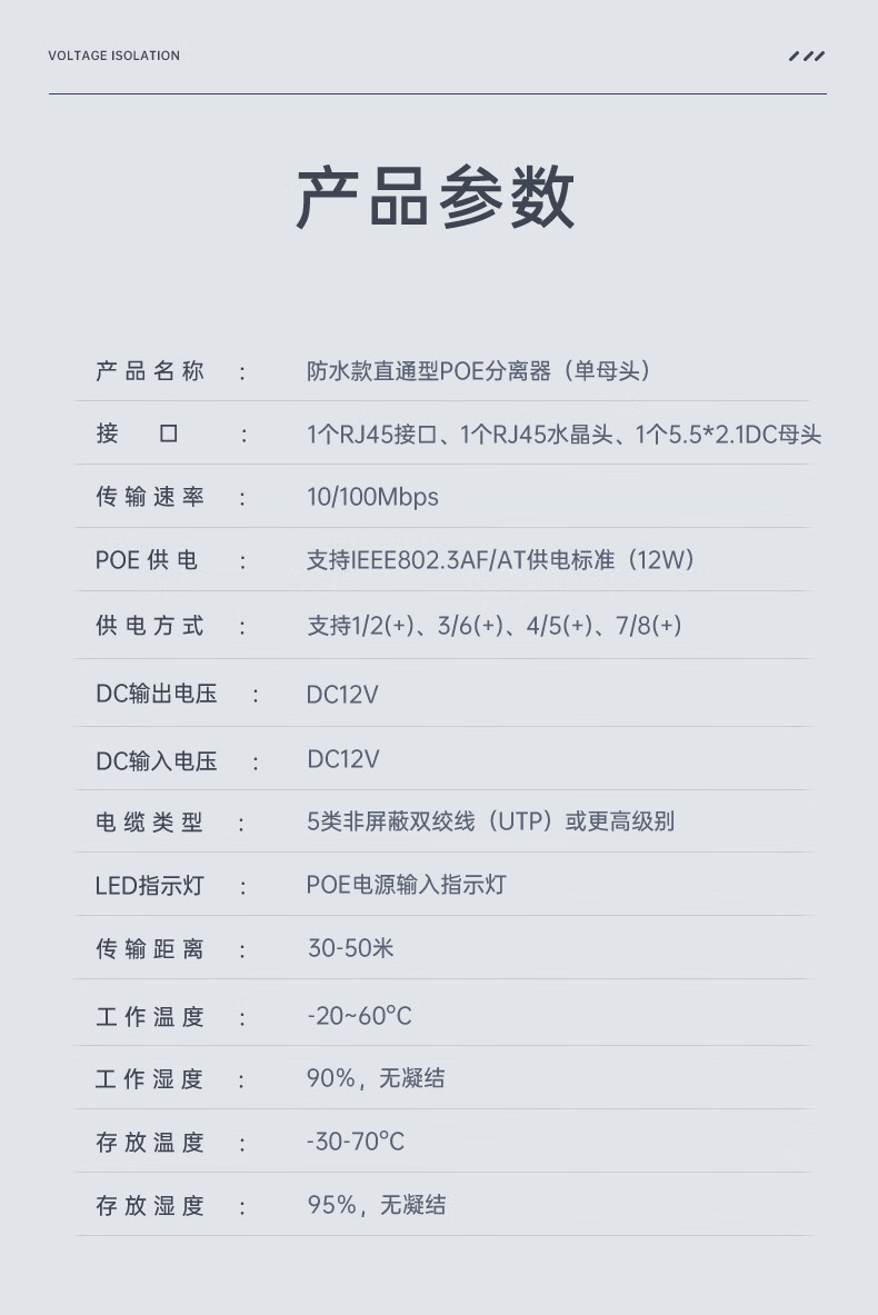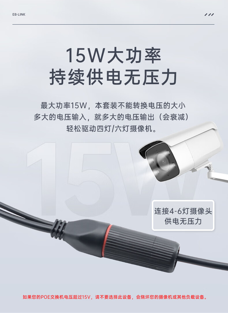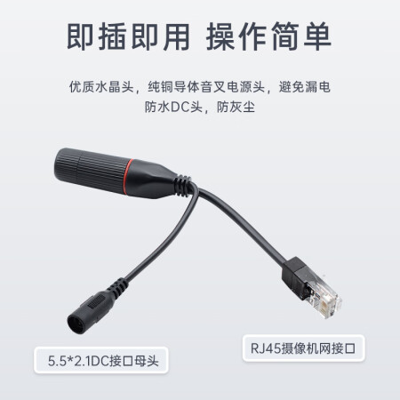 EB-LINK 12V 网络连接设备 直通型POE分离器监控POE网络设备供电模块POE连接线分离线室外防水(母头)