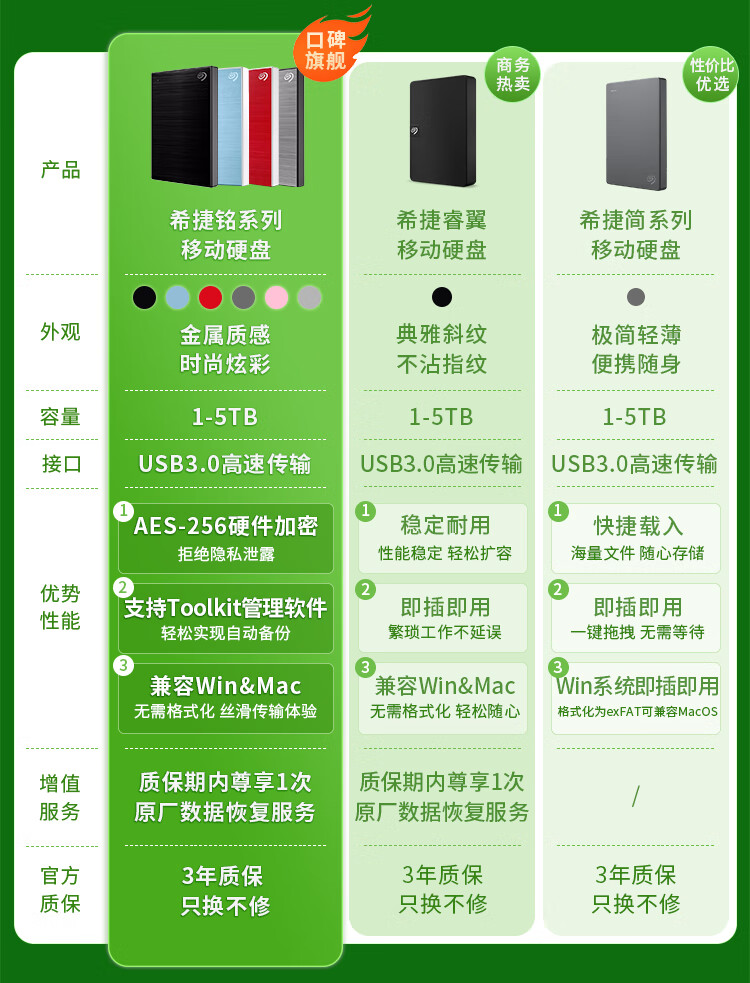 希捷(Seagate)移动硬盘5TB USB3.0 希捷睿翼 2.5英寸 机械硬盘 便携商务 黑 兼容MAC 原厂数据恢复服务