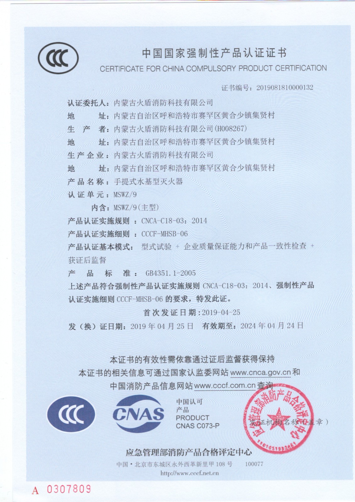 火盾水基灭火器MSWZ/9水基灭火器 9升 9L低温碳钢水基型灭火器 家用商用灭火器 (0-55°C)