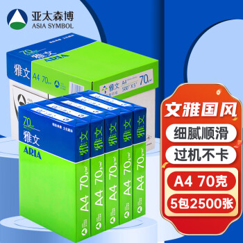 亚太森博 雅文70g A4纸 复印纸打印流畅 500张/包 5包整箱(2500张)(百旺系列)
