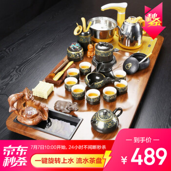 百鸿 功夫茶具套装家用整套自动流水茶盘陶瓷茶杯茶壶办公会客现代简约茶台