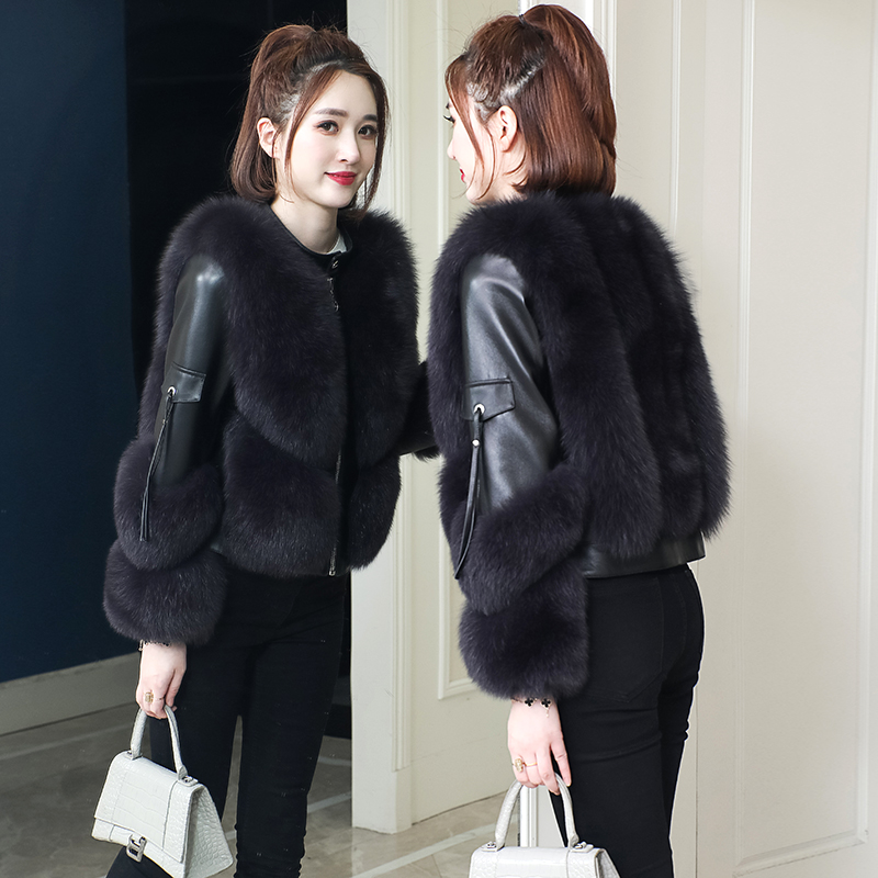 • 真皮皮衣女装短款夹克狐狸毛一体海宁皮草修身羽绒服冬新款外套厚